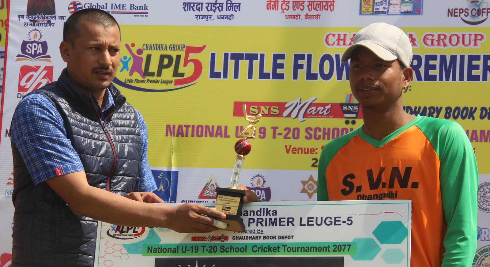 काठमाडौं (हाम्रो खेलकुद) – धनगढीमा जारी विद्यालयस्तरीय राष्ट्रिय क्रिकेट प्रतियोगिता चण्डिका ग्रुप लिटल फ्लावर प्रिमियर लिगमा आइतबार शारदा विद्या निकेतन र होल्याण्ड स्कुल विजयी भएका छन् । आइतबार पहिलो खेलमा धनगढीको शारदा विद्या निकेतनले कञ्चनपुरको लिटल बुद्धलाई २६ रनले पराजित गर्यो । टस जितेर ब्याटिङ गरेको शारदाले निर्धारित २० ओभरमा ९ विकेटको गुमाउँदै १ सय […]