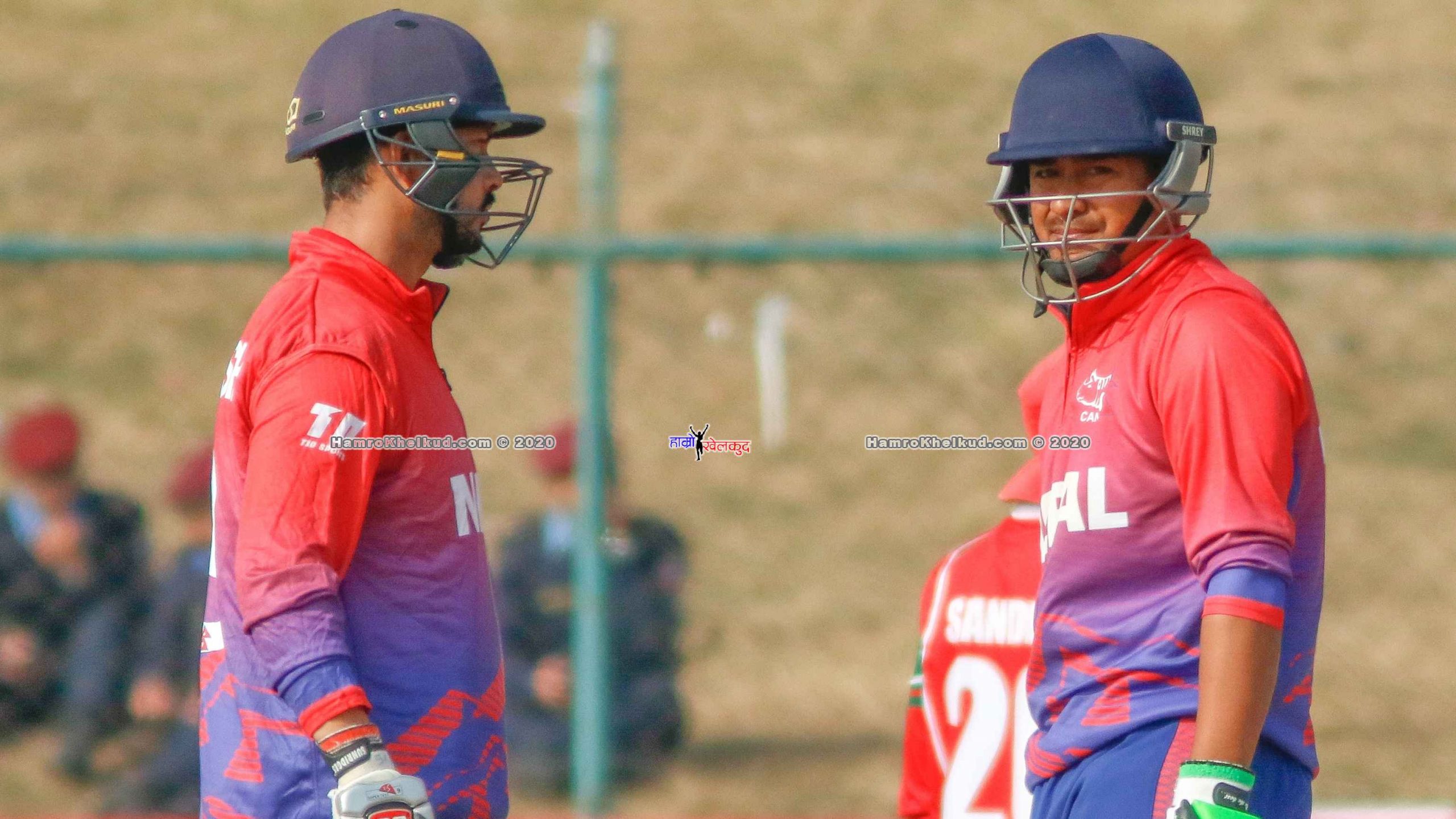 काठमाडौं (हाम्रो खेलकुद) – आईसीसी विश्वकप लिग-२ त्रिकोणात्मक सिरिज अन्तर्गत तेस्रो खेलमा ओमानविरुद्ध राम्रो सुरुवात गरेको छ । टस हारेर ब्याटिङको निम्तो पाएको नेपालले २० ओभरमा १ विकेट क्षतिमा ८१ रन बनाएको छ । कप्तान ज्ञानेन्द्र मल्ल५१ बलमा ४ चौका र १ छक्का सहित ३५ रनमा खेलिरहेका छन् । त्यस्तै पारस खड्काले २७ बलमा ५ […]