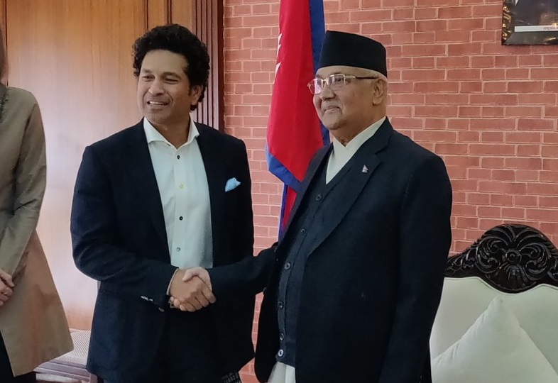 काठमाडौं (हाम्रो खेलकुद) – भारतीय राष्ट्रिय क्रिकेट टोलीका पुर्व कप्तान सचिन तेन्दुलकरले नेपालका प्रधानमन्त्री केपी शर्मा ओलीलाई भेटेका छन् । आइतबार प्रधानमन्त्री निवास बालुवाटारमा पुगेर सचिनले ओलीलाई भेटेका हुन् । सचिन शनिवार काभ्रेको पात्लेखेल पुगेका थिए । जहाँ सचिनलाई स्थानियले ढाका टोपी र फुलमालाले स्वागत गरेका थिए । सचिनले पशुपतीनाथ मन्दिरमा दर्शन पनि गरेका छन् […]