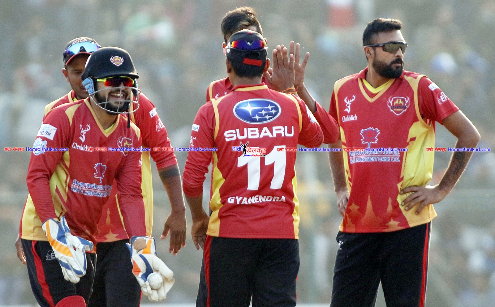 काठमाडौं (हाम्रो खेलकुद) – भैरहवा ग्ल्याडीयटर्सलाई १४ रनले पराजित गर्दै ललितपुर प्याट्रीयट्सले एभरेस्ट प्रिमियर लिग (ईपीएल) को उपाधि जितेको छ । ललितपुरले प्रस्तुत गरेको १ सय ५६ रनको लक्ष्य पछ्याउने क्रममा भैरहवाले ९ विकेट गुमाउँदै १ सय ४१ रनमात्र जोड्न सक्यो । अन्तिम ओभरमा जितका लागि भैरहवालाई १७ रन आवश्यक परेको अवस्थामा योगेन्द्रसिंह कार्कीले २ […]