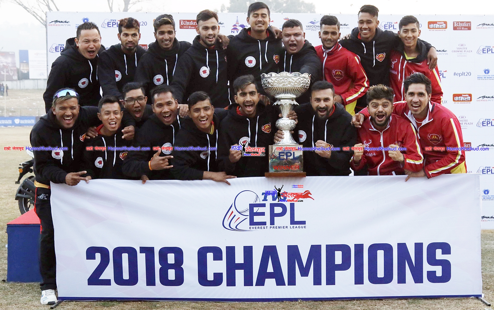 काठमाडौं (हाम्रो खेलकुद) – घरेलु क्रिकेटका तीन ठूला टि ट्वान्टी प्रतियोगितामध्ये एभरेष्ट प्रिमियर लिग (ईपीएल) को २०१८ संस्करणको उपाधि ज्ञानेन्द्र मल्लको कप्तानीमा रहेको ललितपुर प्याट्रियट्सले पहिलो पटक जितेको छ । कीर्तिपुरस्थित त्रिभुवन विश्वविद्यालयको मैदानमा शरद भेषावकरको भैरहवा ग्ल्याडियटर्सलाई १४ रनले हराउँदै ललितपुरले इपिएल उपाधि जितेको हो । अन्य दुई प्रतियोगिता धनगढी प्रिमियर लिग (डीपीएल) र […]