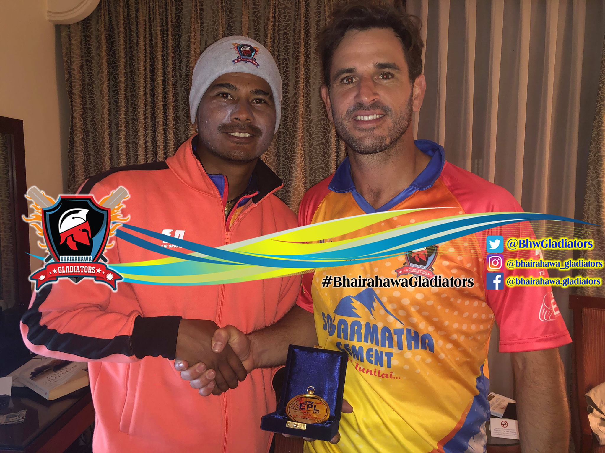 काठमाडौं (हाम्रो खेलकुद) – भैरहवा ग्ल्याडीयटर्सले एभरेष्ट प्रिमियर लिग (ईपीएल) अन्तर्गत मंगलबारको दोस्रो खेलमा चितवन टाइगर्सलाई १२ रनले पराजित गर्दा अलराउण्ड प्रदर्शन गरेका डच खेलाडी रायन टेन डोस्काटे खेलको म्यान अफ द म्याच चुनिए । भैरहवाको लागि रायन टेन डोस्काटे र अभिनाश बोहोराले घातक बलिङ गरेका थिए । बोहाराले ४ ओभरमा १३ रन खर्चेर १ […]