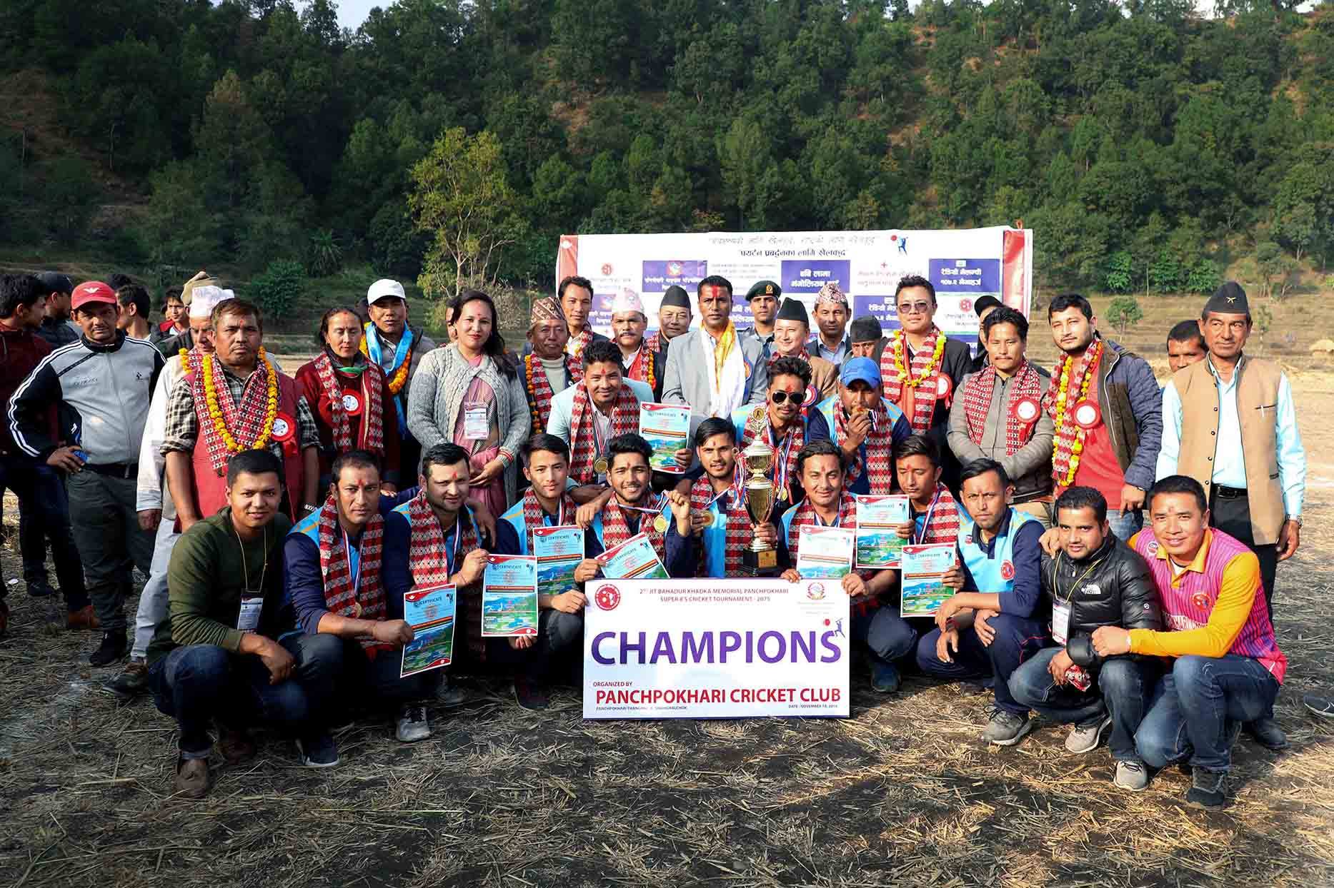 काठमाडौं (हाम्रो खेलकुद) – आयोजक पाँचपोखरी क्रिकेट क्लबले क्रिकेट क्लब बाह्रबिसेलाई ५ विकेटले पराजित गर्दै दोस्रो जितबहादुर खड्का स्मृति पाँचपोखरी सुपर ८ क्रिकेट प्रतियोगिताको उपाधि जितेको छ । उपाधिसँगै विजेता टोलीले ५० हजार रुपैयाँ हात पार्यो । फाइनल खेलमा टस जितेर ब्याटिङ गरेको बाह्रबिसेले ५ ओभरमा ७ विकेट गुमाउँदै ३६ रन जोडेको थियो । बाह्रबिसेलाई […]