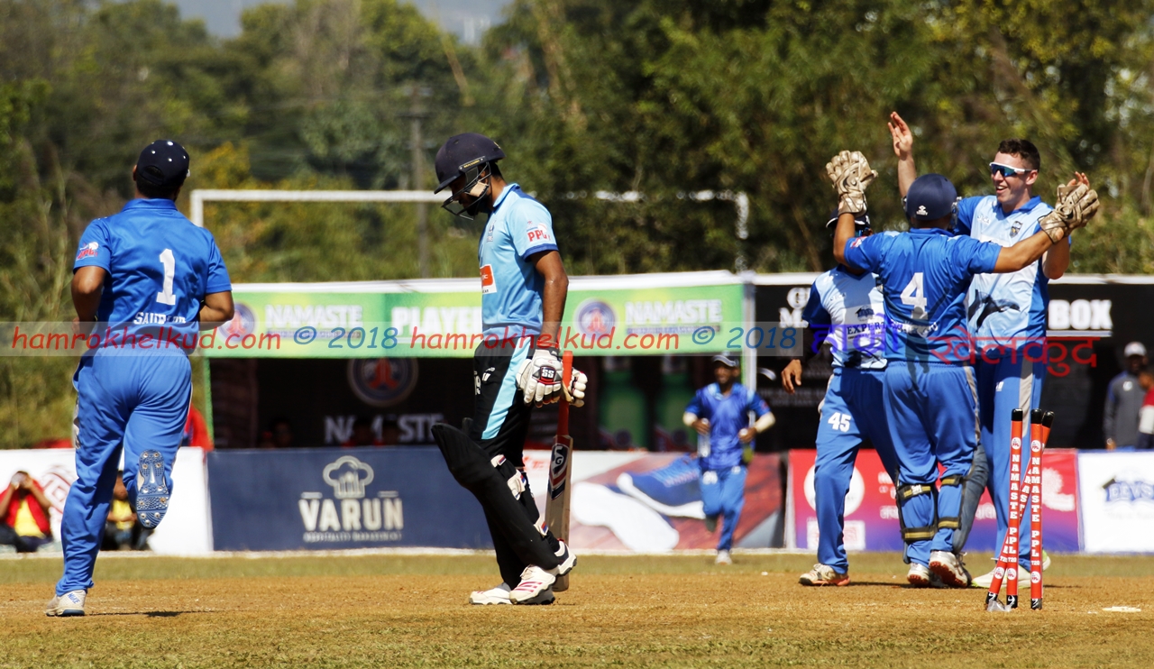 पोखरा (हाम्रो खेलकुद) – नमस्ते पोखरा प्रिमियर लिग (पीपीएल) अन्तर्गत आइतबारको पहिलो खेलमा एक्स्पर्ट धनगढी ब्लुजले विराटनगर टाइटन्सलाई ७८ रनले पराजित गरेको छ । एक्सपर्टले प्रस्तुत गरेको १ सय ८३ रनको लक्ष्य पछ्याउने क्रममा विराटनगर १७ औं ओभरमा १ सय ४ रनमा अलआउट भयो । प्रतियोगितामा धनगढीको यो पहिलो जित हो । विशाल लक्ष्य पछ्याएको […]