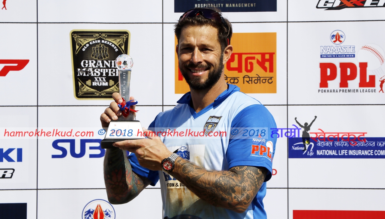 पोखरा (हाम्रो खेलकुद) – नमस्ते पोखरा प्रिमियर लिग(पीपीएल) को चौथो खेलमा विराटनगर टाइटन्सलाई एक्सपर्ट धनगढी ब्लुजले ७८ रनले हराउँदै प्रतियोगितामा पहिलो जित निकाल्यो । पोखरा रंगशालामा टस हारेर पहिला ब्याटिङ गरेको धनगढीले २० ओभरमा अल आउट हुँदै १ सय ८२ रन बनाएको थियो । १ सय ८३ रनको लक्ष्य पक्ष्याएको विराटनगर धनगढीको कसिलो बलिङ सामु […]