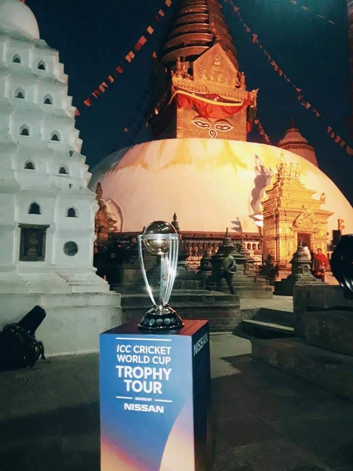 काठमाडौं (हाम्रो खेलकुद) – एकदिवसीय विश्वकप क्रिकेटको ट्रफी शुक्रबार नेपाल आइपुगेको छ । अर्काे वर्ष इंग्ल्यान्ड र वेल्सले संयुक्त रुपमा आयोजना गर्न लागेको एक दिवसीय विश्वकप अघिको ट्रफीलाई ‘विश्व टुर’ अन्तरगत शुक्रबार दिउसै नेपाल ल्याइएपनि साँझ मात्रै ट्रफीलाई स्वयम्भुमा प्रदर्शन गरिएको थियो । ट्रफी चार दिनसम्म नेपालमा रहनेछ । शुक्रबार साँझ काठमाडौं आइपुगेको ट्रफी शनिबार […]