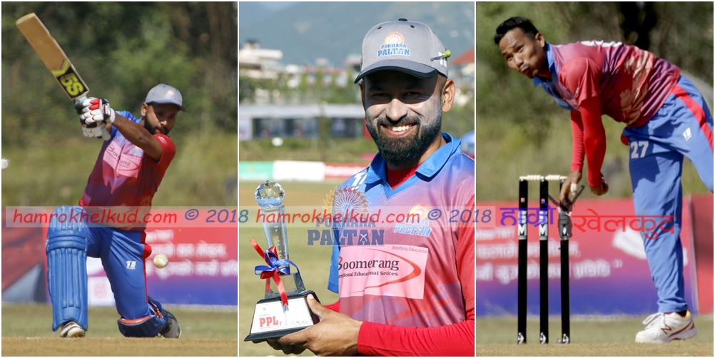 पोखरा (हाम्रो खेलकुद) – पोखरामा आजबाट सुरु भएको पोखरा प्रिमियर लिग (पीपीएल) मा घरेलु टोली पोखरा पल्टनले विजयी सुरुवात गरेको छ । उद्धघाटन खेलमा विराटनगर टाइटन्सलाई ५८ रनले पराजित गर्दै पल्टनले प्रतियोगितामा सानदार सुरुवात गरेको हो । पोखरा रंगशालामा टस हारेर पहिला ब्याटिङको निम्तो पाएको पल्टनले निर्धारित २० ओभरमा मात्र ३ विकेटको क्षतिमा १ सय […]