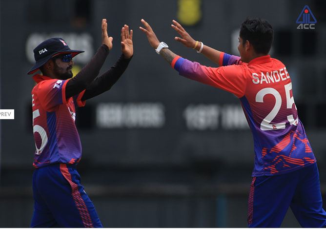 काठमाडौं (हाम्रो खेलकुद) – नेपालले एसिया कप छनोटमा लगातार दोस्रो जित निकालेको छ । सिंगापुरविरुद्ध आइतबार १ सय ५२ रनको लक्ष्य पछ्याएको नेपालले २८.१ ओभरमा ६ विकेट गुमाउँदै आवश्यक रन जोडेको थियो । लगातार दुई जितपछि नेपालको छनोटको फाइनल पुग्ने सम्भावना यथावत छ । तर, त्यसका लागि मंगलबार हङकङलाई फराकिलो अन्तरले हराउनु पर्ने हुन्छ । […]