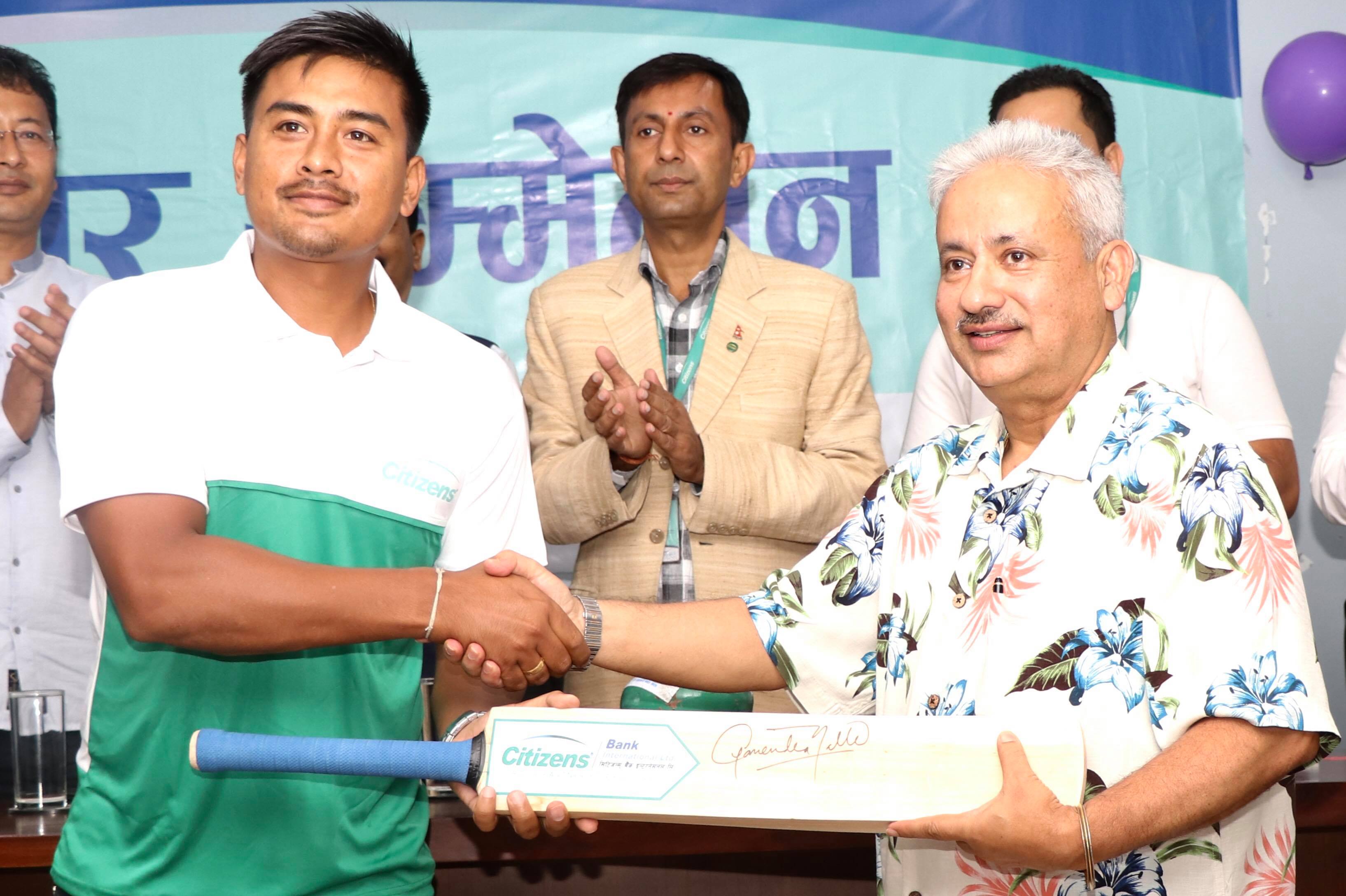 काठमाडौं (हाम्रो खेलकुद) – नेपाली राष्ट्रिय क्रिकेट टोलीका उप–कप्तान ज्ञानेन्द्र मल्ल सिटिजन्स बैंकको ब्रान्ड एम्वासडर नियुक्त भएको छ । सिटिजन्स बैंकले शुक्रबार उप–कप्तान ज्ञानेन्द्रलाई १ वर्षको लागि ब्राण्ड एम्वासडर नियुक्त गरेको हो । ब्रान्ड एम्वासडरबापतको रकम भने खुलाईएको छैन । बैंकका प्रमुख कार्यकारी अधिकृत (सिइओ) राजन सिंह भण्डारीले ज्ञानेन्द्रलाई क्रिकेट ब्याट हस्तान्तरण गर्दै बैंको ब्रान्ड एम्वास […]