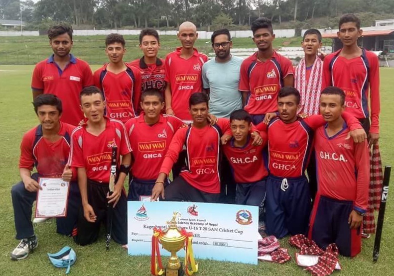 काठमाडौं (हाम्रो खेलकुद)– वाइवाई ग्रेट हिमालय क्रिकेट एकेडेमीले कागेश्वरी मनोहरा यु –१६ टि–२० सान क्रिकेट कपको उपाधि जितेको छ । कीर्तिपुरस्थित त्रिवि क्रिकेट मैदानमा शनिबार भएको फाइनलमा नेक्सस क्रिकेट एकेडेमीमाथि ५ विकेटको जित निकाल्दै ग्रेट हिमालय च्याम्पियन बनेको हो । वर्षाका कारण १० ओभरमा घटाएउको खेलमा नेक्ससले दिएको ४५ रनको लक्ष्य ग्रेट हिमालयले ९.१ ओभरमा […]