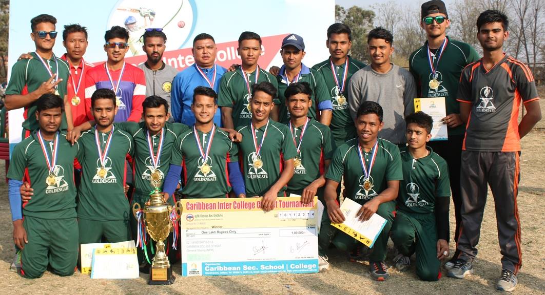 काठमाडौं (हाम्रो खेलकुद) – गोल्डेनगेट इन्टरनेसनल कलेजले क्यारेबियन कप अन्तरकलेज टि– ट्वेन्टी क्रिकेट प्रतियोगिताको उपाधि जितेको छ । पुल्चोक इन्जिनियरिङ कलेजको मैदानमा बुधबार भएको फाइनलमा गोल्डेनगेटले पाटन बहुमुखी क्याम्पसलाई ६ विकेटले पराजित गर्दै उपाधि जित्न सफल भएको हो । पहिले ब्याटिङ गरेको पाटनले निर्धारित २० ओभरमा ५ विकेट क्षतिमा १ सय ७ रनको योगफल खडा […]