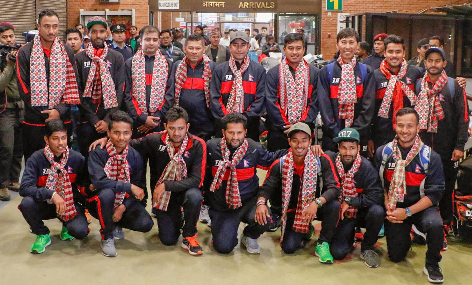 काठमाडौं (हाम्रो खेलकुद)– विश्व कप क्रिकेटको छनोटमा स्थान पक्का गर्दै नेपाली क्रिकेट टोली नामिबियाबाट शनिबार साँझ स्वदेश आइपुगेको छ । आइसीसी विश्व क्रिकेट लिग डिभिजन २ मा नेपाल उपविजेता बन्दै फर्केको हो । नेपाली टोली त्रिभुवन अन्तर्राष्ट्रिय विमानस्थलबाट बाहिरिदा समर्थकले भव्यस्वागत गरेका थिए । झन्डै ३ सयको हाराहारीमा विमानस्थल पुगेका समर्थकले टोली र कप्तान पारस […]