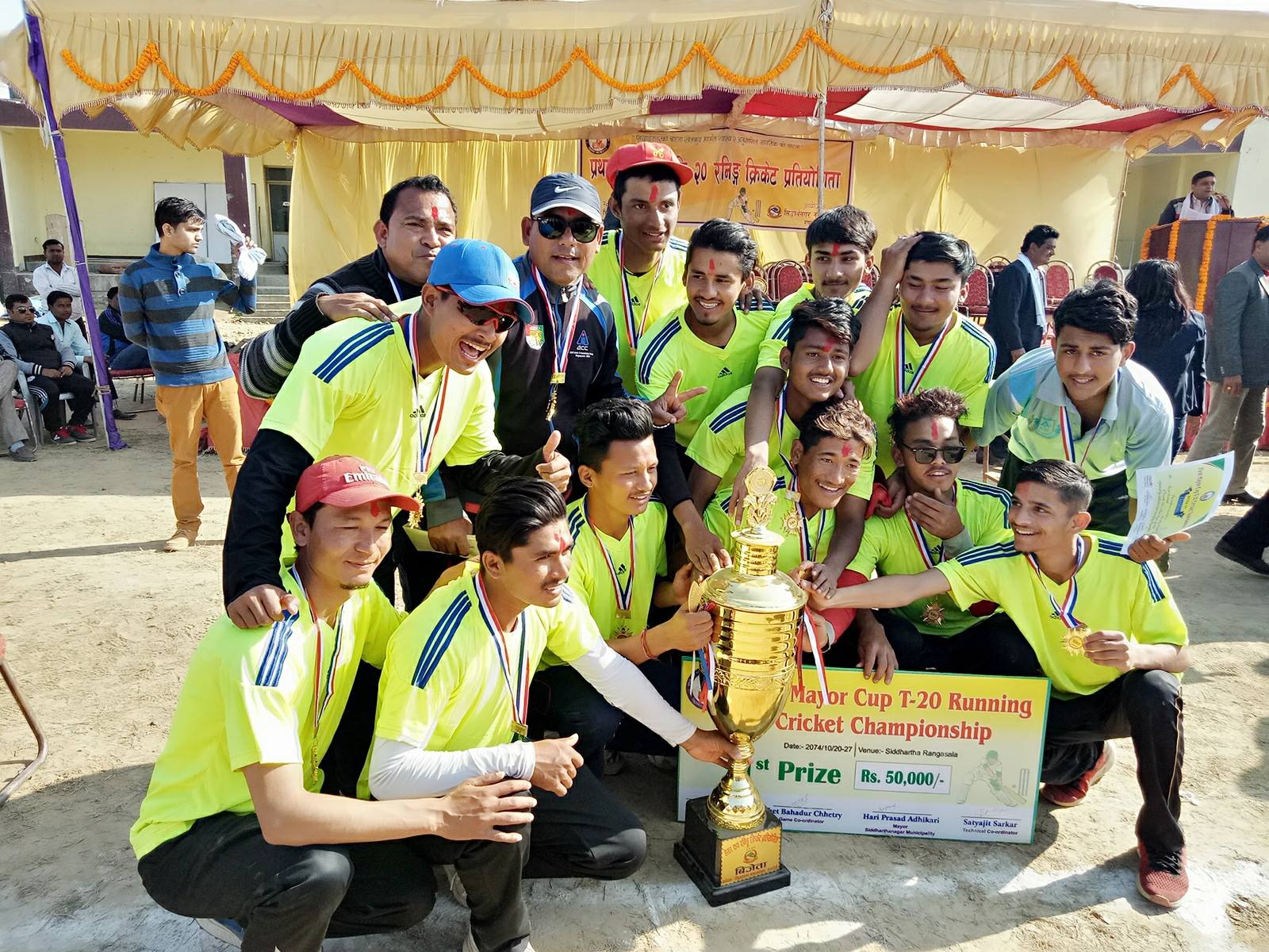 भैरहवा (हाम्रो खेलकुद)– तिरुपति क्रिकेट क्लबले प्रथम मेयर कप टि–२० रनिङ क्रिकेट प्रतियोगिताको उपाधि जितेको छ । शनिबार भैरहवास्थित सिद्धार्थ रंगशालामा भएको फाइनलमा लुम्बिनी खुकुरी क्रिकेट क्लबमाथि २ रनको रोमांचक जित निकाल्दै तिरुपति च्याम्पियन बनेको हो । तिरुपतिले उपाधिसहित ५० हजार र खुकुरीले २५ हजार रुपैयाँ प्राप्त गर्यो । प्रतियोगितामा बुम एमसिसी क्रिकेट क्लबका विक्रम […]