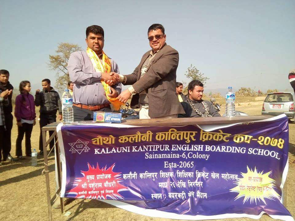 बुटवल (हाम्रो खेलकुद)– रुपन्देहीको सैनामैना कलौनीमा चौथो कलौनी कान्तिपुर शिक्षक शिक्षिका क्रिक्रेट प्रतीयोगीता शुक्रबार सुरु भएको छ । कलौनी कान्तिपुर बिद्यालयको आयोजनामा भएको उद्घाटन खेलमा जनकल्याण माविले रिभाइवल इङ्लिस बोर्डिङ स्कुललाई ३८ रनले हराएको छ । टस जितेर ब्याटिङ गरेको जनकल्याणले १० ओभरमा ४ विकेटको क्षेतिभमा १ सय ८ रन बनाएको थियो । ५५ रन […]