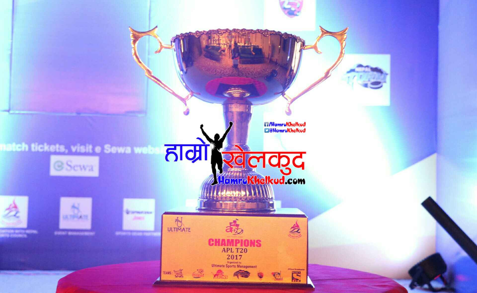काठमाडौं (हाम्रो खेलकुद) – असार ५ गतेदेखि टि.यु. अन्तर्राष्ट्रिय मैदानमा सुरु हुने एसियन प्रिमियर लिगको ट्रफी सार्वजनिक भएको छ। कुल ४० लाख भारु नगद पुरस्कार रहेको प्रतियोगिताको विजयी टोलीले २५ लाख भारु पाउनेछ। उपविजेताले १० लाख भारु पाउने प्रतियोगिताको तेश्रो हुने टोलीले ५ लाख जित्नेछ।