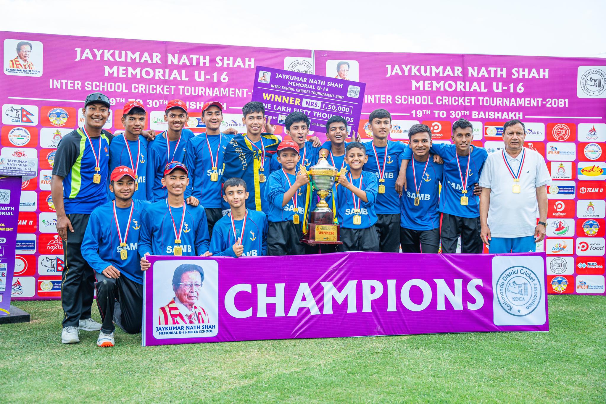 काठमाडौं (हाम्रो खेलकुद) – सैनिक आवासीय महाविद्यालयले जयकुमार नाथ शाह स्मृति यू-१६ अन्तर स्कुल क्रिकेट प्रतियोगिता २०८१ को उपाधि जितेको छ । उपाधिसँगै सैनिकले डेढ लाख रुपैयाँ हात पार्यो । आइतबार मुलपानी क्रिकेट मैदानमा भएको फाइनलमा मोक्षदा स्कुललाई १० विकेटले पराजित गर्दै सैनिकले उपाधि जितेको हो । वर्षाले प्रभावित खेलमा सैनिकले जितका लागि ९ ओभरमा […]