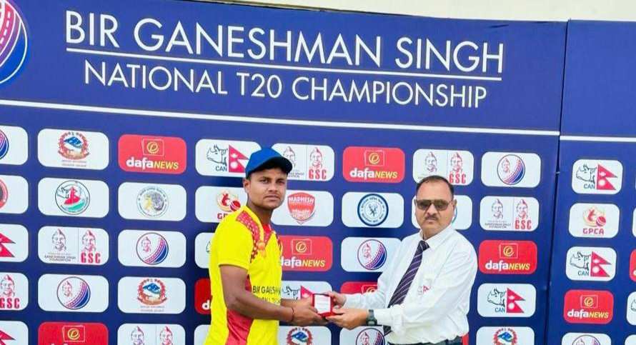 काठमाडौं (हाम्रो खेलकुद) – वीर गणेशमान सिंह राष्ट्रिय टी–ट्वान्टी च्याम्पिनसिपमा मधेश प्रदेशले लगातार दोस्रो जित निकालेको छ । मयान यादव र अरनिको यादवले अर्धशतकीय पारी खेल्दा मधेशले बुधबार लुम्बिनी प्रदेशलाई २७ रनले पराजित गर्यो । माथिल्लो मुलपानी क्रिकेटमा मैदानमा भएको खेलमा लुम्बिनीले टस जितेर पहिले फिल्डिङ रोज्यो । मधेशले निर्धारित २० ओभरमा ९ विकेट गुमाउँदै […]