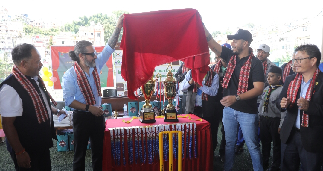 काठमाडौं (हाम्रो खेलकुद)- एन्जल्स हार्ट नेसनल स्कुलको आयोजनामा जुनियर क्रिकेट लिग मंगलवार मनमैजुस्थित एन्जल्स स्पोर्ट्स एकेडेमीमा सुरु भएको छ ।प्रतियोगिताको नेपाल प्रिमियर लिगको फ्रेन्चाइज टोली काठमाडौं गोर्खाजका कार्यकारी निर्देशक अनुभव सिरोहियाले उद्घाटन गरे । सोही अवसरमा सिरोहिया र काठमाडौं गोर्खाजका प्रमुख कार्यकारी अधिकृत सुरजसिंह ठकुरीले विजेता टोलीको ट्रफी पनि सार्वजनिक गरे। सहभागी १६ टोलीका कप्तान […]