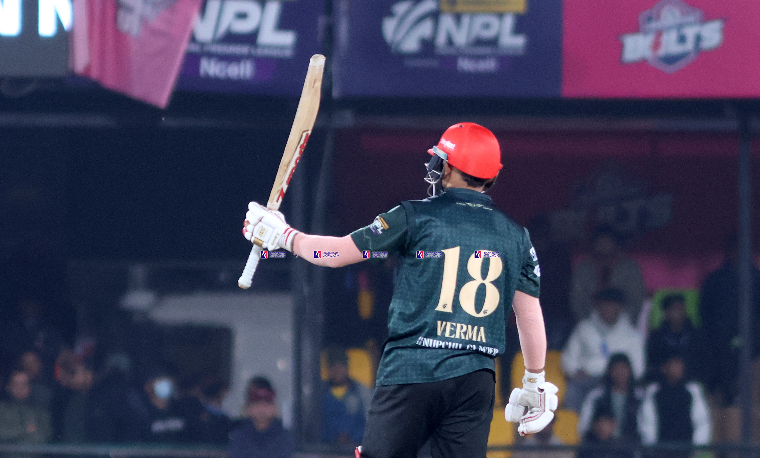 काठमाडौं (हाम्रो खेलकुद)- दोस्रो संस्करणको नेपाल प्रिमियर लिग (एनपिएल) मा पोखरा एभेन्जर्सले जनकपुर बोल्ट्सलाई जितको लागि १ सय ५६ रनको प्रतिस्पर्धात्मक चुनौती दिएको छ। पोखराका सुमित बर्माले अर्धशतकीय पारी खेले। टियु क्रिकेट स्टेडियममा पोखराका कप्तान कुशल भुर्तेलले टस जितेर ब्याटिङ रोजे। जारी एनपोएलमा टस जितेर ब्याटिङ रोज्ने पोखरा पहिलो टोली बन्यो। पोखराले २० ओभरमा ६ […]