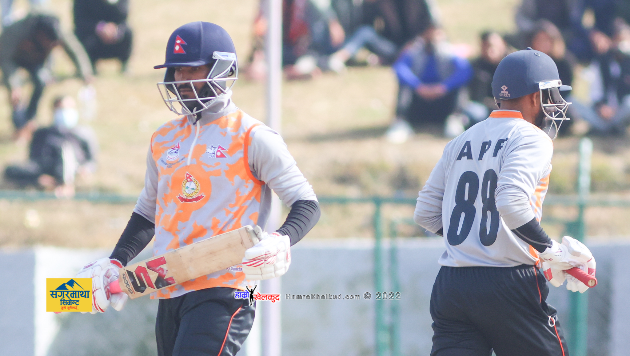 काठमाडौं (हाम्रो खेलकुद) – नेपाल एपिएफ क्लबका ओपनर आसिफ शेख र प्रदीप ऐरीले आफ्नो उच्च लयलाई निरन्तरता दिँदै त्रिभुवन आर्मी क्लबविरुद्ध प्रधानमन्त्री कप टि२० राष्ट्रिय प्रतियोगिताकै उत्कृष्ट साझेदारी गरेका छन् । टियु क्रिकेट मैदानमा टस हारेर ब्याटिङको निम्तो पाएको एपिएफले सुरुवाती १३ ओभरमा कुनै विकेट नगुमाउँदै १ सय २७ रन बनाएको छ । कुनैपनि विकेटका […]