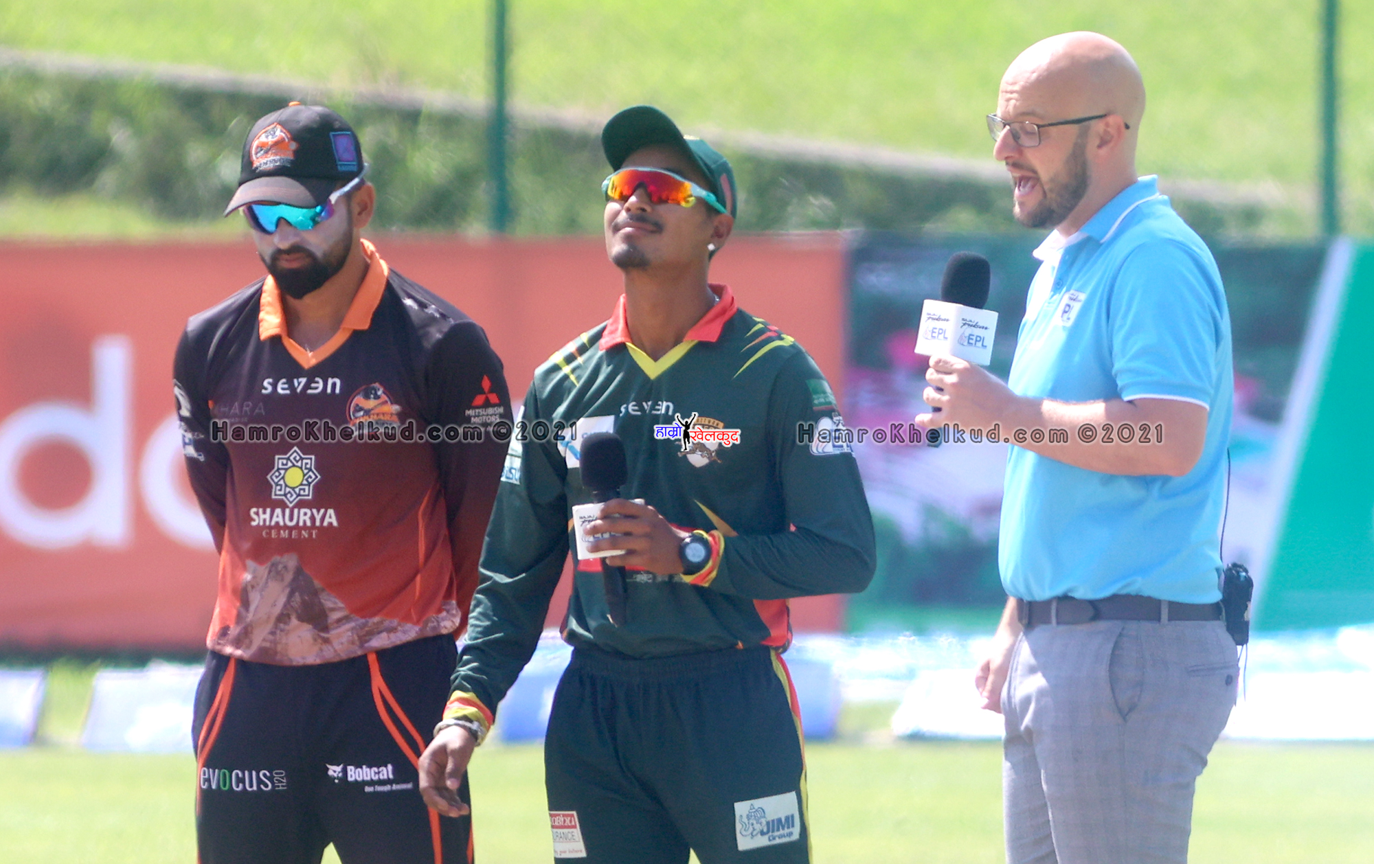 काठमाडौं (हाम्रो खेलकुद) – एभरेष्ट प्रिमियर लिग (इपिएल) चौथो संस्करणको फाइनलमा चितवन टाइगर्सले पोखरा राइनोजविरुद्ध पहिला फिल्डिङ गर्ने भएको छ । टियु मैदानमा चितवनका कप्तान सोमपाल कामीले टस जितेर पहिला फिल्डिङ गर्ने निर्णय लिएका छन् । दुबै टोलीले आफ्नो प्लेइङ ११ मा परिवर्तन गरेका छैनन् । दुबै टोली पहिलो फाइनलमै उपाधि जित्ने सोचमा छन् । […]