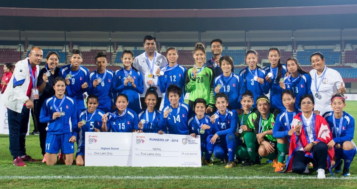 काठमाडौं (हाम्रो खेलकुद) – हिरो गोल्डकपको उपविजेता नेपाली राष्ट्रिय महिला फुटबल टोली सोमबार स्वदेश फर्किएको छ । भारतको भुवनेश्वरमा आयोजना भएको प्रतियोगितामा ४ देशको सहभागिता रहेको थियो । नेपाली टोली भारतको भुवनेश्वरबाट सोमबार स्वदेश फर्किएपनि काठमाडौं आउने छैनन् । अखिल नेपाल फुटबल संघका अनुसार नेपाली महिला फुटबल टोली पाँचौ महिला साफ च्याम्पियनसिपका लागि इटहरीमा रहेर […]