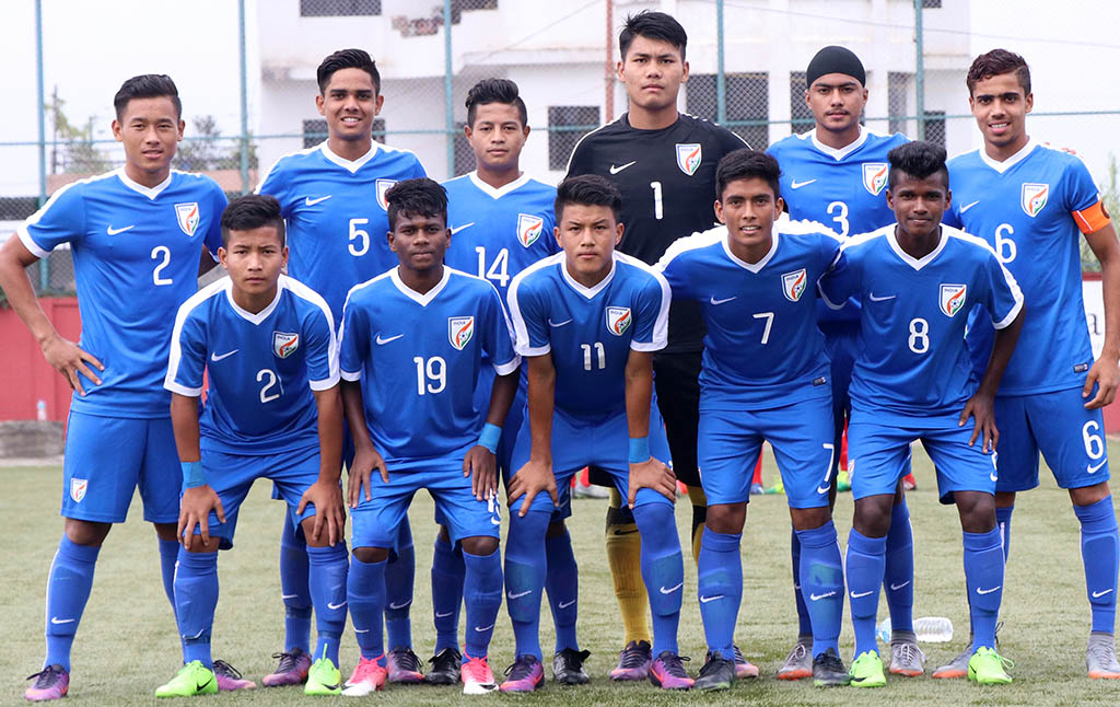 काठमाडौं(हाम्रो खेलकुद) – नेपाली युथ टोली साफ यू १५ च्याम्पियनसिपको उपाधिबाट वञ्चित बनेको छ । एन्फा कम्प्लेक्सको खेल मैदानमा आइतबार भएको खेलमा नेपाल सधैको जस्तै भारतसँग २–१ ले पराजित हुदै उपाधिबाट वञ्चित बनेको हो । तस्बिर : बिबेक सुबेदी / हाम्रो खेलकुद