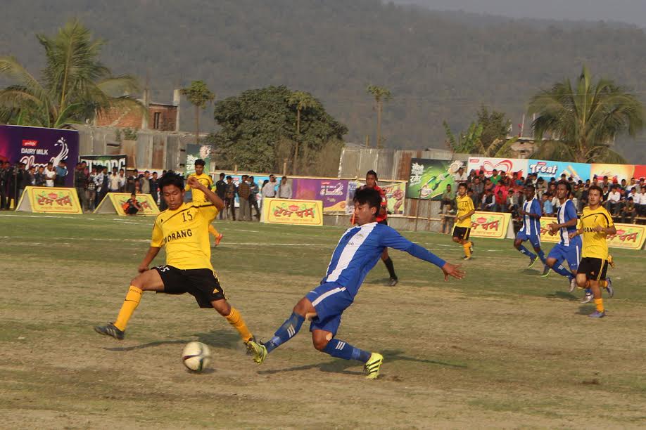 उदयपुर (हाम्रो खेलकुद) – उदयपुर स्थित थरुहट गाईघाट रंगशालामा सन्चालन भइरहेको उदयपुर गोल्डकपको मंगलबारको सेमी फाईनल खेलमा रुपन्देही ११ ले हिमालयन शेर्पालाई २ को विरुद्ध ३ गोलले पराजित गर्दै फाईनलमा प्रवेश गरेको छ। रुपन्देहीले खेलको २० औं मिनेटमा फरवार्ड अमर डंगोलको गोलमा अग्रता लिएको थियो। पहिलो हाफमै रुपन्देहीले दिपक राइको गोल मार्फत अग्रता दोब्बर बनायो। […]