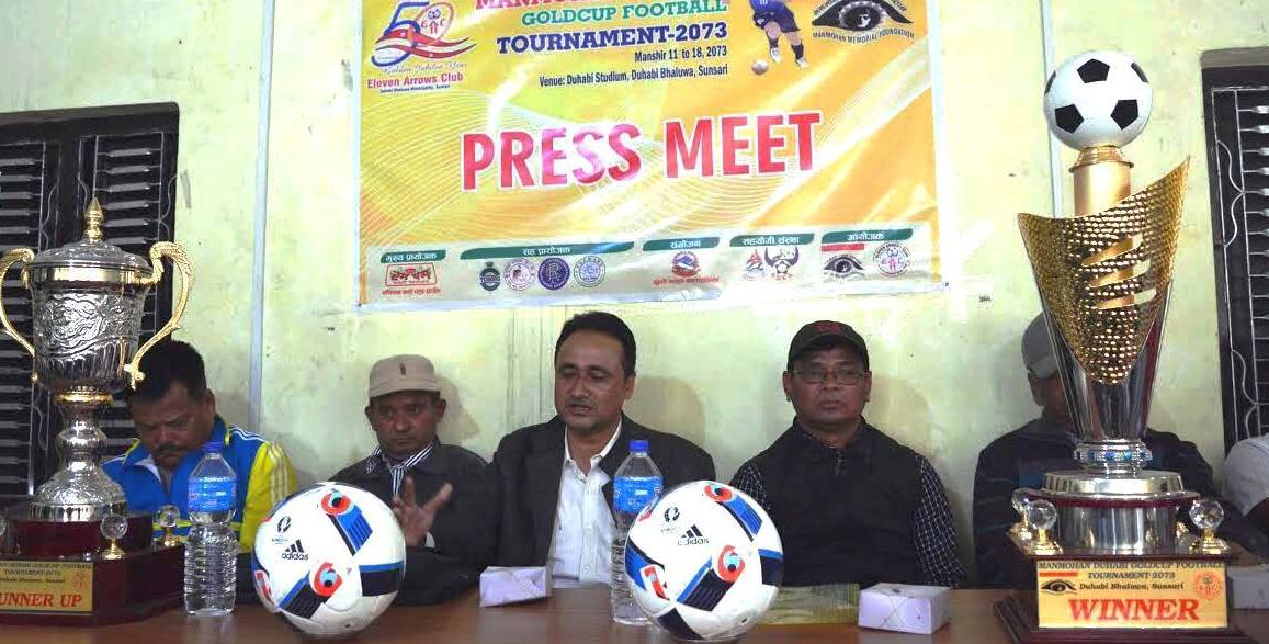 काठमाडौं (हाम्रो खेलकुद) – मनमोहन दुहवी गोल्डकप फुटबल प्रतियोगिता शनिबारबाट दुहवी भालुवामा सुरु हुँदैछ । नेपाल, भारत र भुटानका ८ टोलीको सहभागिता रहने प्रतियोगिता मंसिर १८ गते सम्म सञ्चालन हुने बुधबार पत्रकार सम्मेलनमा जानकारी दिइयो । प्रतियोगिता मनमोहन स्मृती प्रतिष्ठान तथा एलेभन एरोज क्लबको संयुक्त आयोजनामा हुन लागेको हो । आफ्नो स्थापनाको पाँच दशक पुरा […]