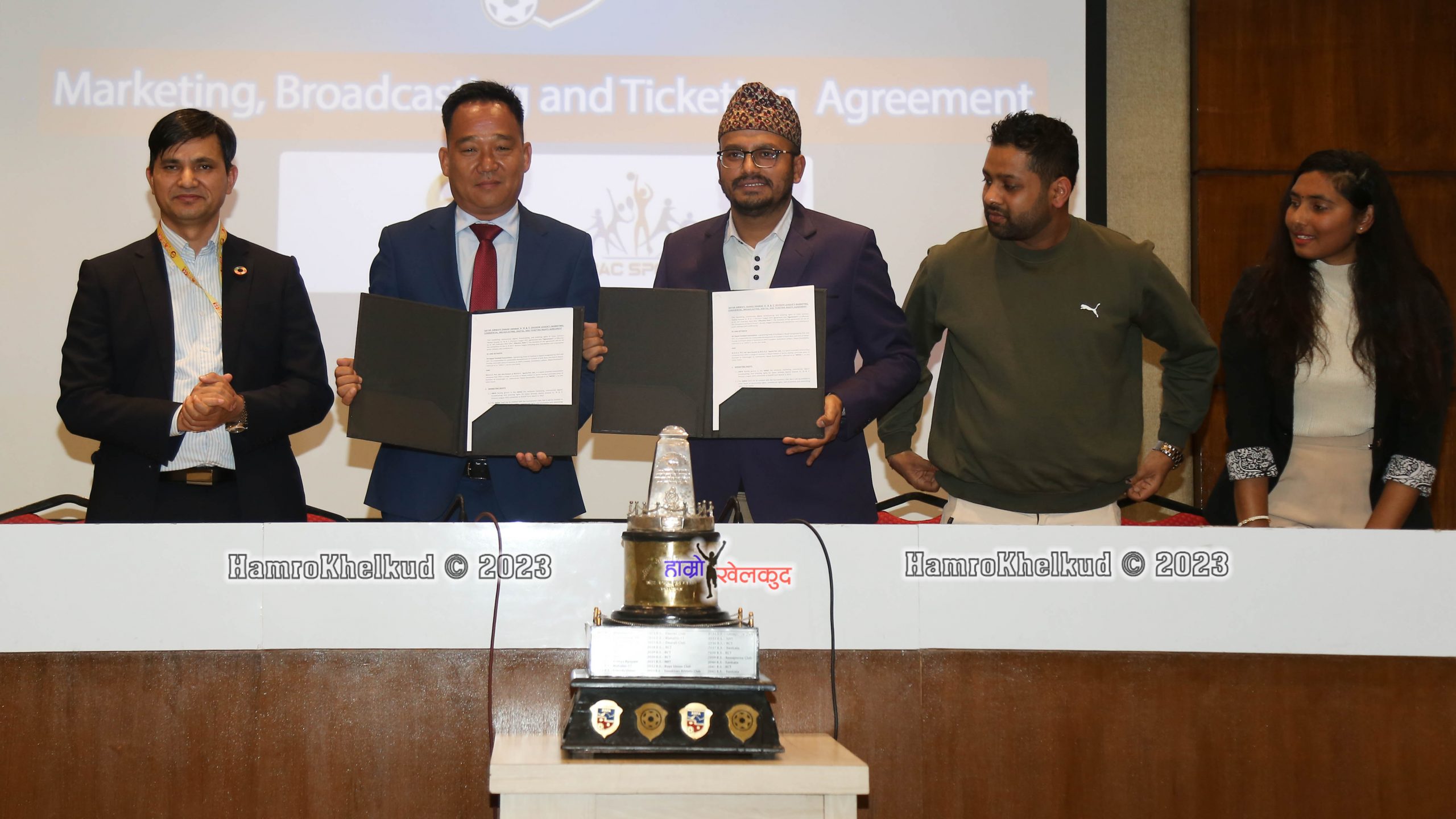 काठमाडौं (हाम्रो खेलकुद) – अखिल नेपाल फुटबल संघ (एन्फा) ले आयोजना गर्ने शहिद स्मारक ए, बी र सी डिभिजन लिगको मुख्य प्रायोजक बाहेक मार्केटिङ, ब्रोडकास्टिङ, डिजिटल र टिकेटिङको सम्पुर्ण अधिकार एमडिएस स्पोर्ट्स प्रालिले प्राप्त गरेको छ । एन्फाले आब्हान गरेको टेन्डर प्रक्रियाबाट एमडीएससीले भ्याटबाहेक १ करोड ९७ लाख रुपैयाँमा मुख्य प्रायोजकबाहेक मार्केटिङ, ब्रोडकास्टिङ, डिजिटल र […]