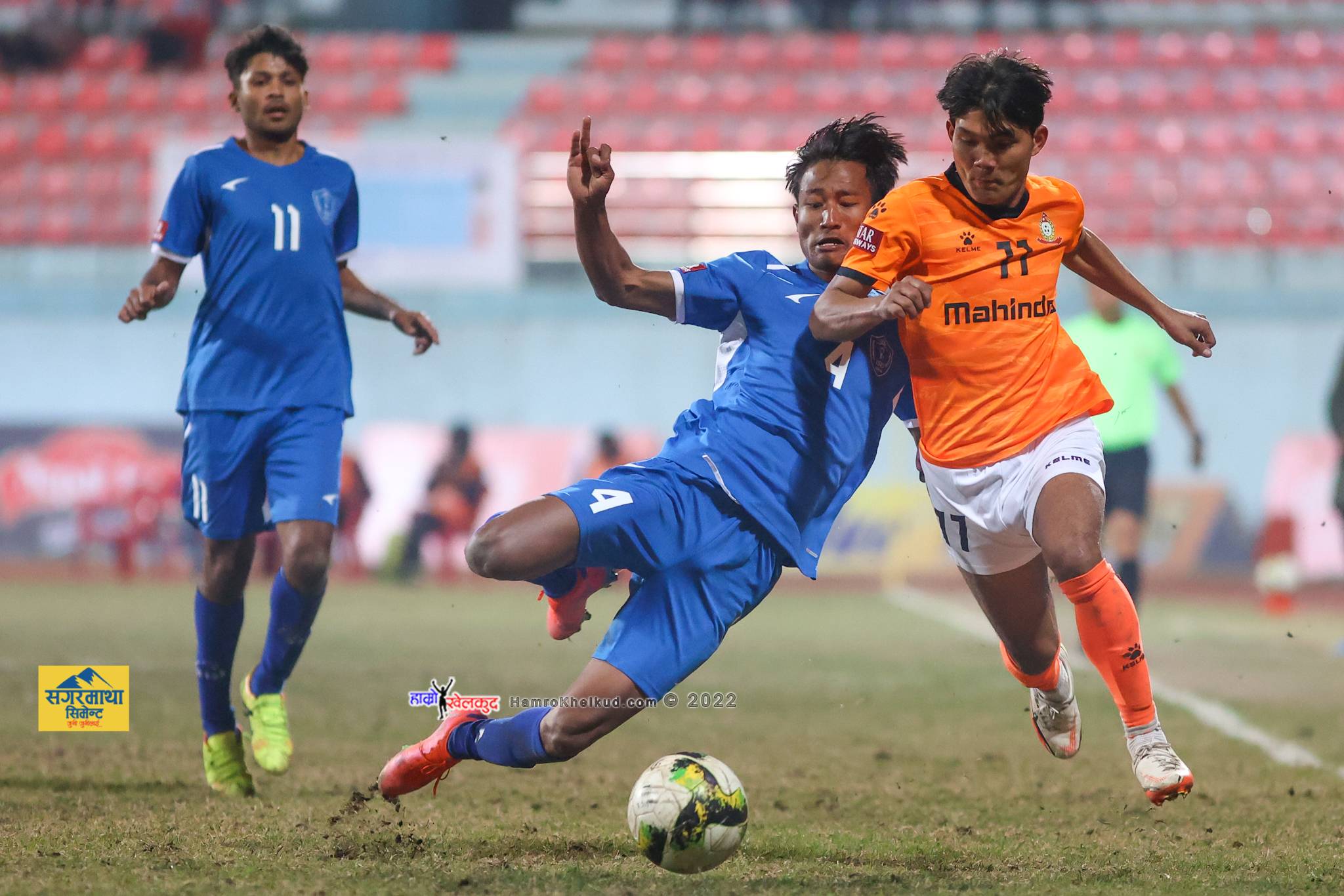 काठमाडौं (हाम्रो खेलकुद) – कतार एअरवेज सहिद स्मारक ‘ए’ डिभिजन लिगमा रेलिगेसन जोनमा संघर्ष गरिरहेको फ्रेन्ड्स क्लबले ब्रिगेड ब्वाइज क्लब (बीबीसी) विरुद्ध पहिलो हाफमा अग्रता लिएको छ । फ्रेन्ड्सले रेलिगेसनकै डरमा रहेको बीबीसीविरुद्ध पहिलो हाफमा ३–१ को अग्रता लिन सफल भएको हो । त्रिपुरेश्वरस्थित दशरथ रंगशालामा शुक्रबार भएको खेलमा फ्रेन्ड्सका सुशिल शाह, श्यामबाबु क्याप्छकी र […]