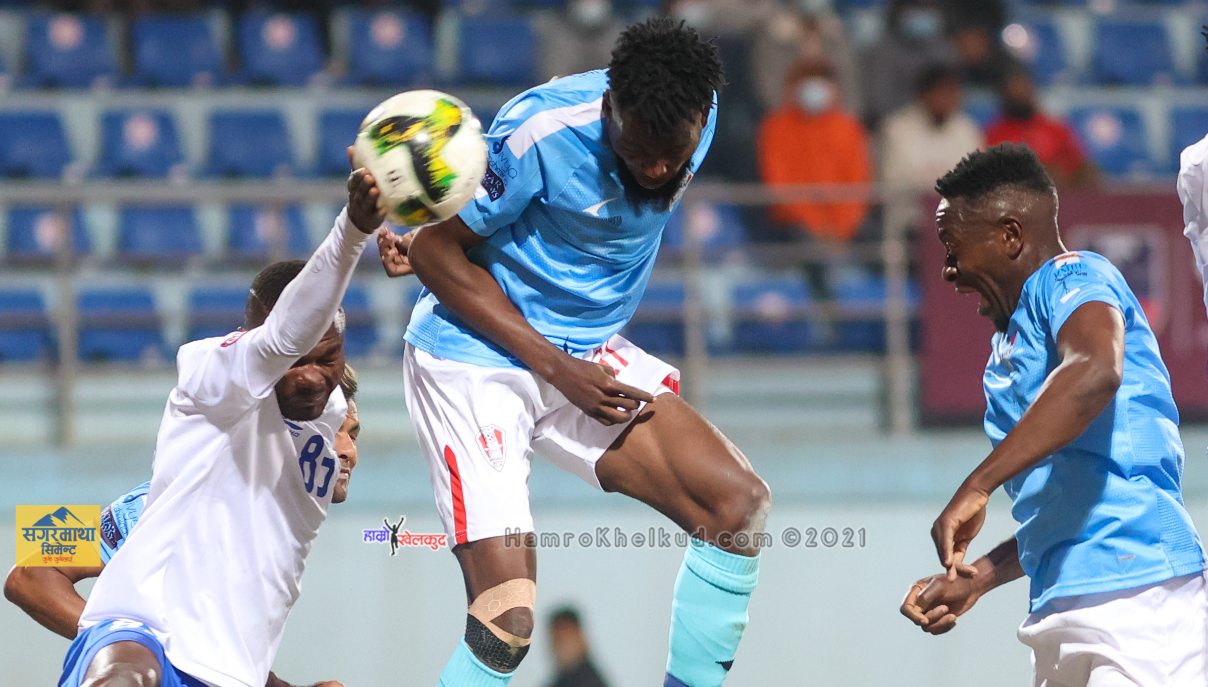 काठमाडौं (हाम्रो खेलकुद) – रुस्लान थ्री स्टार क्लब र नेपाल एपिएफ फुटबल क्लबले कतार एअरवेज सहिद स्मारक ‘ए’ डिभिजन लिग अन्तगतको खेलको पहिलो हाफमा बराबरी खेलेका छन् । त्रिपुरेश्वरस्थित दशरथ रंगशालामा आइतबार भएको खेलको पहिलो हाफ गोलरहित बराबरीमा सकिएको हो । २९औं मिनेटमा हेमन्त थापामगरको कर्नरमा राफयल रिमगागोको हेडर पोस्टमाथिबाट बाहिरिदा थ्री स्टार अग्रता लिनबाट […]