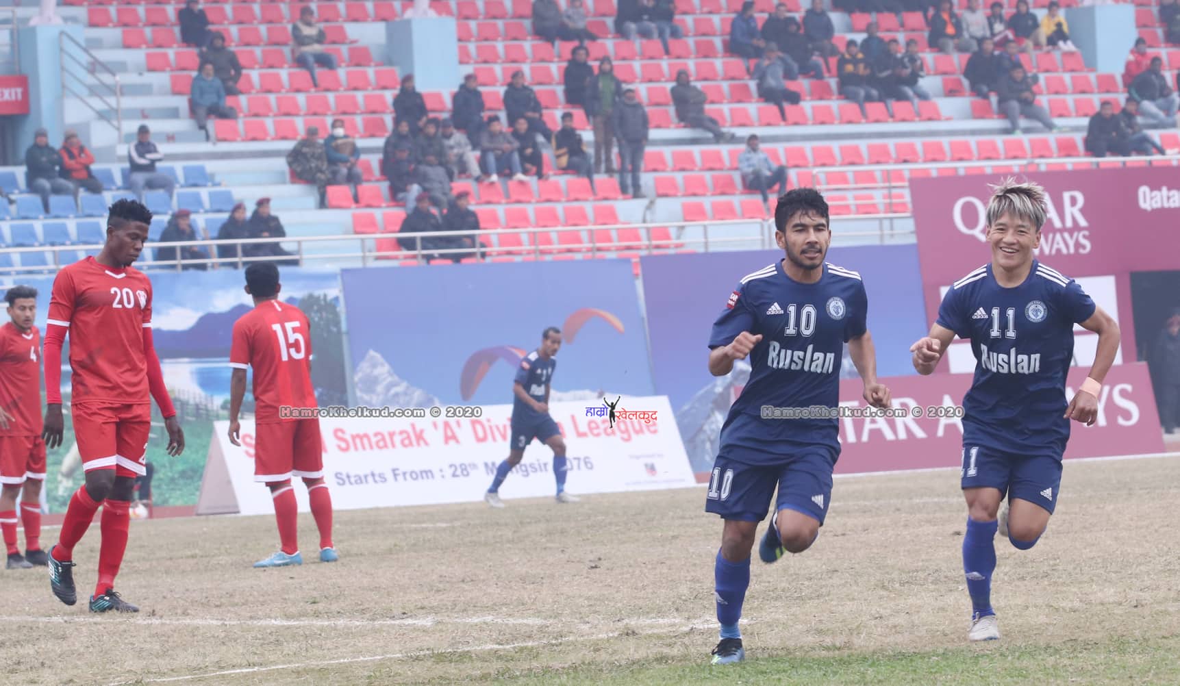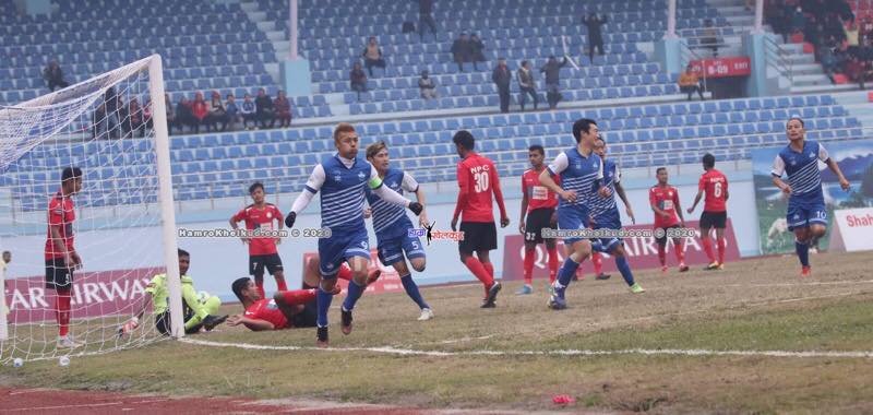 काठमाडौं (हाम्रो खेलकुद)– सहिद स्मारक ए डिभिजन लिगमा बुधबार ब्रिगेड ब्वाइज क्लब (बिबिसी) विरुद्धको पहिलो हाफमा रुस्लान थ्री स्टार क्लबले २–० को अग्रता लिएको छ । थ्री स्टारका लागि सुसान श्रेष्ठ र अनन्त तामाङले गोल गरेका थिए । १४ औं मिनेटमा सुसान श्रेष्ठको गोलमा थ्री स्टारले अग्रता लिएको थियो । अशोक खवासको पासमा सुसानले सिक्स […]