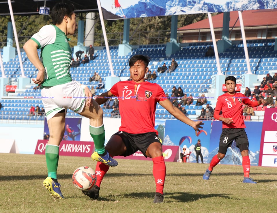 काठमाडौं (हाम्रो खेलकुद)– इन्जुरी समयमा दयानन्द सिंहले गोल गरेपछि कतार एयरवेज सहिद स्मारक ए डिभिजन लिगमा सिग्नेचर मनाङ मस्र्याङ्दी क्लबले लगातार दोस्रो जित हासिल गरेको थियो । ५ मिनेट इन्जुरी समयको दोस्रो मिनेटमा रिबाउन्डमा प्राप्त बलमा दायानन्दले खाली पोष्टमै गोल गरेपछि उपाधि दाबेदारका रुपमा हेरिएको सोमबार त्रिभुवन आर्मी क्लब १–० ले पराजित भएको थियो । […]