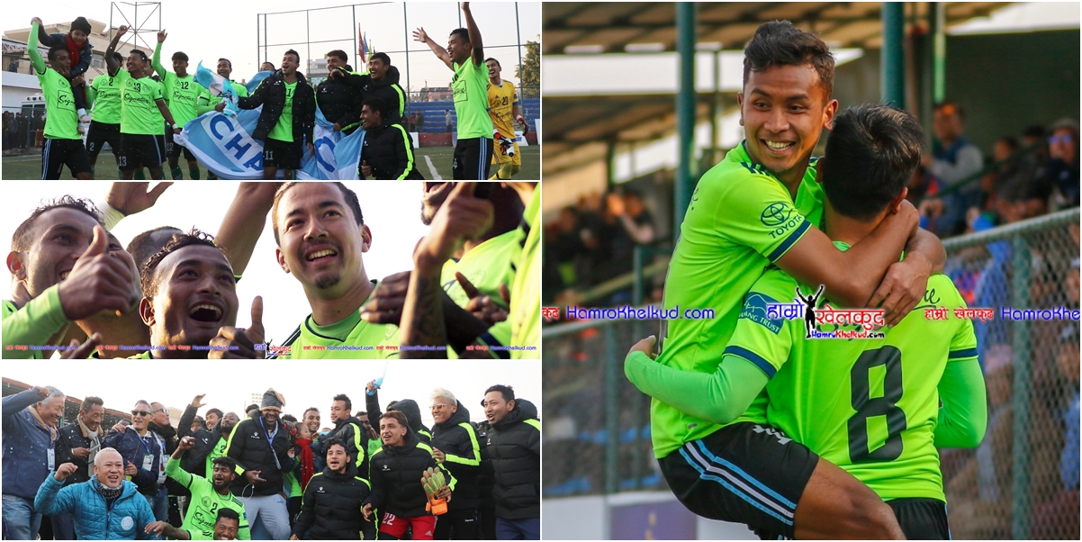 काठमाडौं (हाम्रो खेलकुद) – मनाङ मर्स्याङदी क्लबले बिहिबार लिगको दोस्रो स्थानको सीएमजी क्लब संकटालाई ३-१ ले पराजित गर्दै लिग उपाधि पक्का गर्यो । किर्तीमानी आठौं उपाधि जित्ने क्रममा मनाङले ११ मध्ये ११ खेलमा नै जित हात पारेको छ । शत प्रतिशत जित नतिजासहित लिग उपाधि पक्का गरेको मनाङले खेलदौरान यसरी खुसी मनाएको थियो :