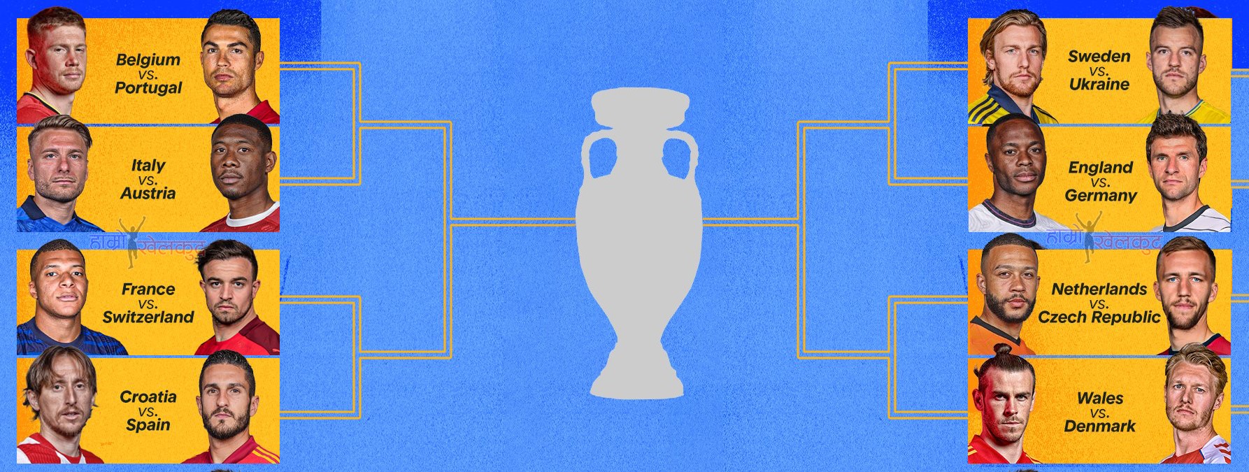 एजेन्सी – युरोपेली च्याम्पियनसिप २०२० अन्तर्गत समूह चरणको खेल समाप्त भएसँगै अन्तिम १६ को खेल समीकरण पनि पूरा भएको छ । अन्तिम दिन समूह एफमा दुवै खेल २-२ को रोमान्चक बराबरीमा सकिएपछि नकआउट चरणमा पुग्ने सबै टोलीको टुंगो लागेको हो । अन्तिम १६ मा पुग्ने टोली : समुह ए : इटाली, वेल्स र स्विट्जरल्यान्ड (टर्की बाहिरियो) समूह बी : बेल्जियम र डेनमार्क (फिनल्यान्ड र रसिया बाहिरिए) समूह सी : नेदरल्यान्ड्स, अष्ट्रिया र युक्रेन (नर्थ म्यासेडोनिया बाहिरियो) समूह डी : इंग्ल्यान्ड, क्रोएसिया र चेक रिपब्लिक (स्कटल्यान्ड बाहिरियो) […]