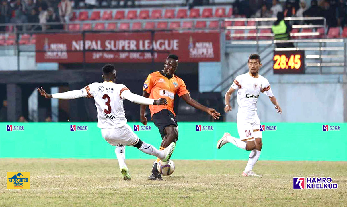 काठमाडौं (हाम्रो खेलकुद) – दोस्रो संस्करणको नेपाल सुपर लिग अन्तर्गतको दशरथ रंगशालामा जारी खेलमा बुटवल लुम्बिनी एफसी र पोखरा थन्डर्सले गोलरहित पहिलो हाफ खेलेका छन् । दुवै टोलीबाट धेरै मौका बन्न नसकेको पहिलो हाफमा गोल पनि आउन सकेन । चौथो मिनेटमा बुटवलका स्टेफन बिनोङको प्रहार बक्स भित्रबाट ब्लक हुन पुग्यो । छैठौं मिनेटमा बुटवल कप्तान […]