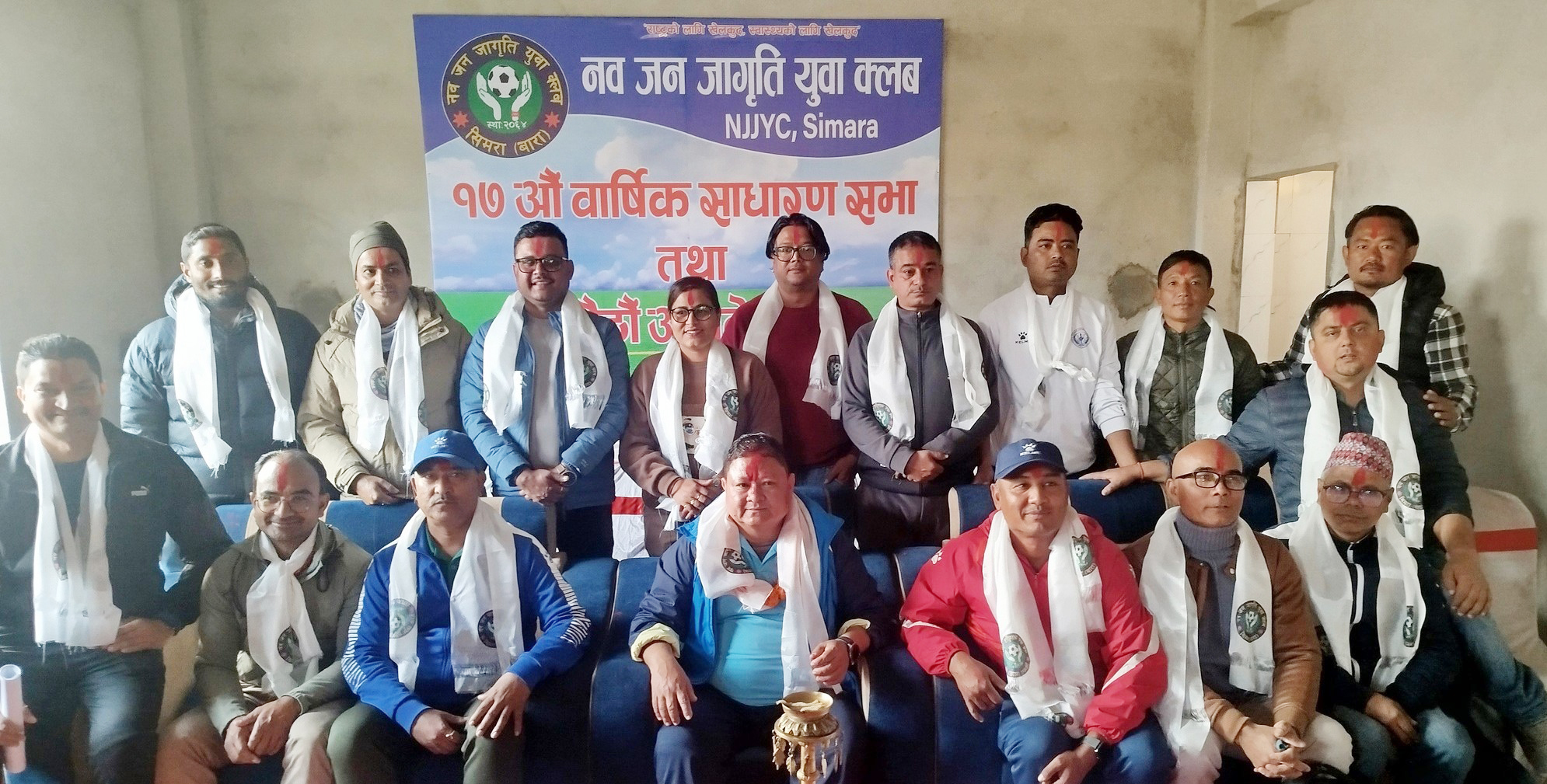 सुनिल गाउँले, बारा जीतपुरसिमरा गोल्डकपको आयोजक नव जन जागृती युवा क्लब सिमराको छैठौं अधिवेशनले नयाँ नेतृत्व चयन गरेको छ । सिमरा रंगशालामा निर्माण भइरहेको एकेडेमी भवनको सभाहलमा सोमवार भएको अधिवेशनले रामचन्द्र लामाको अध्यक्षतामा १७ सदस्यीय नयाँ कार्य समिति सर्वसम्मत चयन गरेको हो । यसअघि पनि लामा नै अध्यक्ष थिए। कार्यसमितिको प्रथम उपाध्यक्षमा शंकर थापा, द्वितीय […]