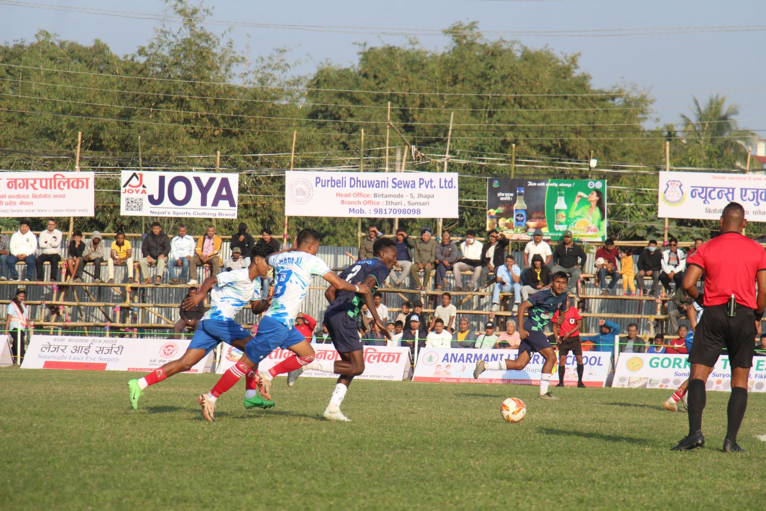 हिमाल खरेल,बिर्तामोड फिनिसिङमा तालमेल नमिल्दा आयोजक झापा–११ एफसी बिर्तामोडमा जारी झापा कपको पहिलो चरणबाटै बाहिरिएको छ । स्टार खेलाडीले भरिएको झापा–११ ले खेल अवधिभर सशक्त आक्रमण गर्न सकेन । डोमालाल राजवंशी रंगशालामा जारी प्रतियोगिताको दोस्रो दिनको आइतवार आयोजक झापा ११ फुटबल क्लबलाई २-० ले पराजित गर्दै राष्ट्रिय जागृति क्लब इटहरी क्वार्टर फाइनलमा प्रवेश गरेको छ […]