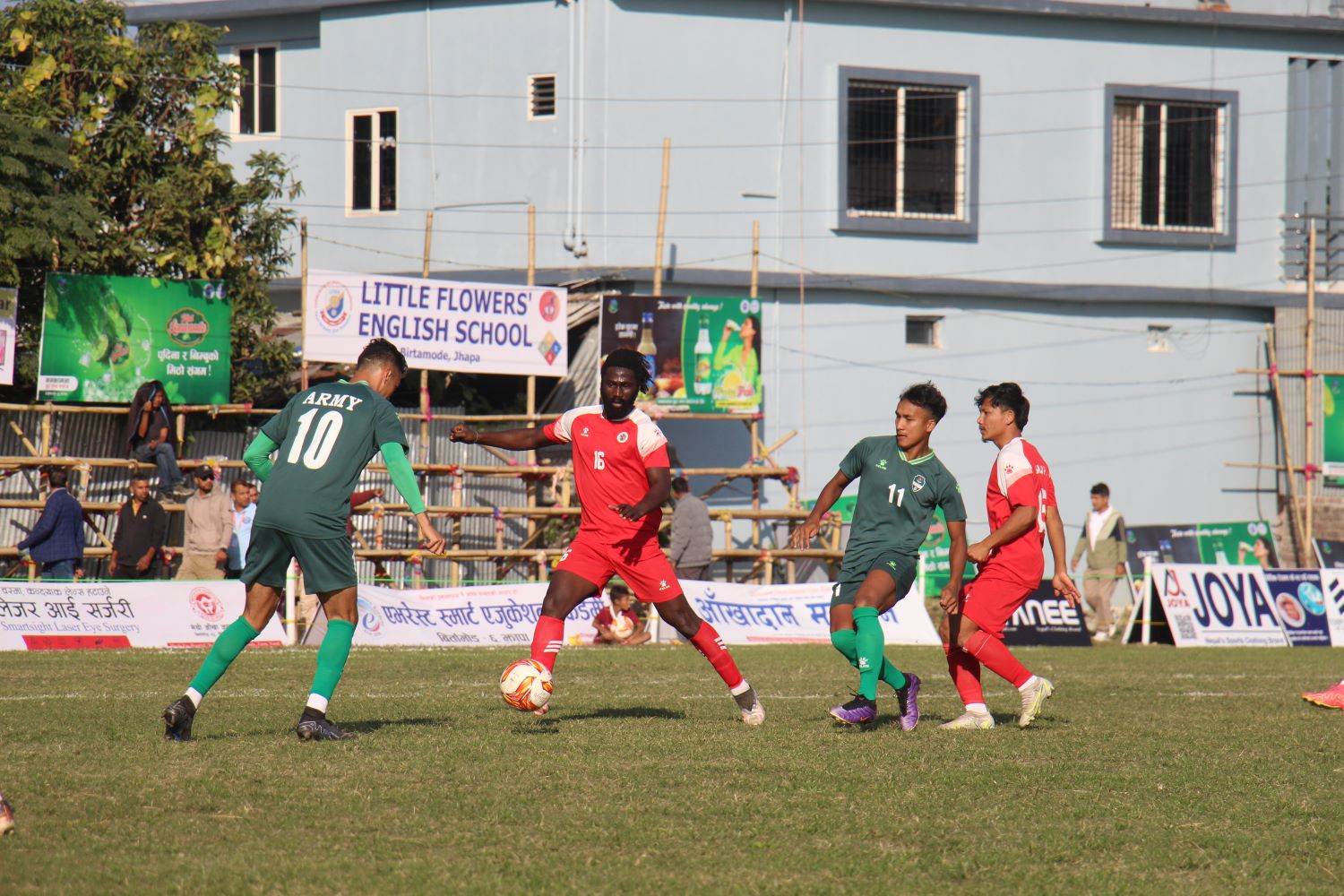 हिमाल खरेल,बिर्तामोड उपाधिको दाबेदार मध्ये त्रिभुवन आर्मी फुटबल क्लब झापाको बिर्तामोडमा जारी प्रथम झापा कपको क्वार्टर फाइनल खेलबाटै बाहिरिएको छ । सिरहाको सलहेश युवा क्लबसँग २-० ले पराजित हुँदै आर्मी खेलबाट बाहिरिएको हो । झापामा हुने प्रतियोगितामा पहिलोपटक सहभागिता जनाएको सलहेश आर्मीलाई पराजित गर्दै सेमिफाइनलमा पुगेको हो । सलहेशको जितमा अभि लामा र आदित्य शाक्यले […]