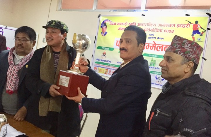 इटहरी (हाम्रो खेलकुद) – जारी मदन भण्डारी इटहरी गोल्डकपमा थ्री स्टारले विभागीय टोली एपिएफलाई २-१ को अन्तरले हराएको छ । यस जितसँगै थ्री स्टार प्रतियोगिताको सेमिफाइनलमा प्रवेश गरेको छ । थ्री स्टारका लागि अजयी मार्टिनले खेलको ३८ औं मिनेटमा गोल गर्दै टोलीलाई अग्रता दिलाए । त्यस्तै खेलको ४८ औं मिनेटमा फेरि मार्टिनले गोल गर्दै टोलीको […]
