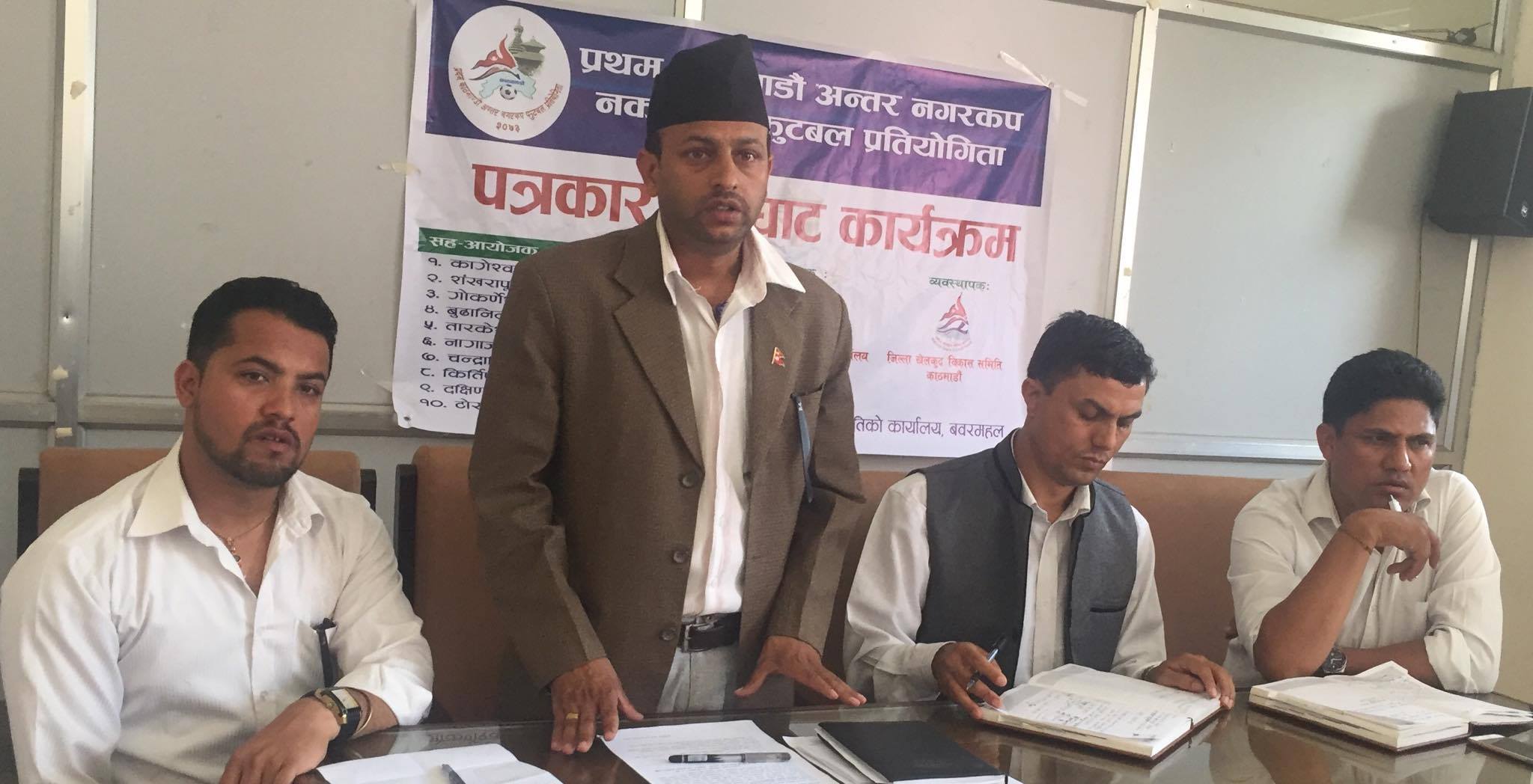 काठमाडौं (हाम्रो खेलकुद)– काठमाडौं जिल्लाका १० नगरपालिकाको सहभागिता प्रथम नगरकप फुटबल प्रतियोगिता मंगलबार सुरु हुने भएको छ । काठमाडौं महानरपालिका बाहेकका १० नगरपालिकाबीच हुने प्रतिस्पर्धाको विजेताले उपाधि १ लाख ११ हजार १ सय ११ रुपैयाँ जित्ने आइतबार आयोजित पत्रकार सम्मेलनमा जिल्ला खेलकुद विकास समितिका अध्यक्ष ध्रुबराज न्यौपानेलले जानकारी दिए । नगरभित्र रहेका फुटबल प्रतिभालाई मौका […]
