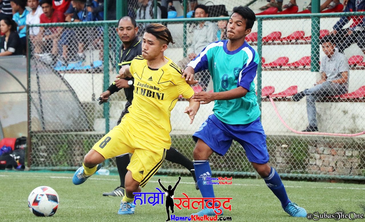 काठमाडौँ (हाम्रो खेलकुद) – न्यु रोड टिम (एनआरटि)लाई पराजित गर्दै जगदम्बा लुम्बिनी फुटबल क्लबले ललित स्मृति यू-१८ फुटबल प्रतियोगितामा विजयी सुरुवात गरेको छ। जित हात पार्दै ३ अंक जोडेको लुम्बिनीले दुवै हाफमा १/१ गोल गरेको थियो। पछिल्लो संस्करणको उपविजेता टोली लुम्बिनीले खेलको २६औं मिनेटमा अजित थापा गोलसँगै अग्रता लिएको थियो। एनआरटिमाथि खेलभर हावी रहेको लुम्बीनीले […]