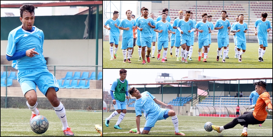 काठमाडौँ (हाम्रो खेलकुद) – एएफसी एसियन कपको तयारीका लागि नेपाली राष्ट्रिय फुटबल टोलीले सातदोबाटोस्थित एन्फा कम्प्लेक्सको मैदानमा प्रशिक्षण गरिरहेको छ। नेपालले जुन १३ तारिखमा यमन विरुद्ध छनोट चरणको दोश्रो खेल खेल्दै छ। आइतबार भएको प्रशिक्षणका केहि तस्बिरहरु: