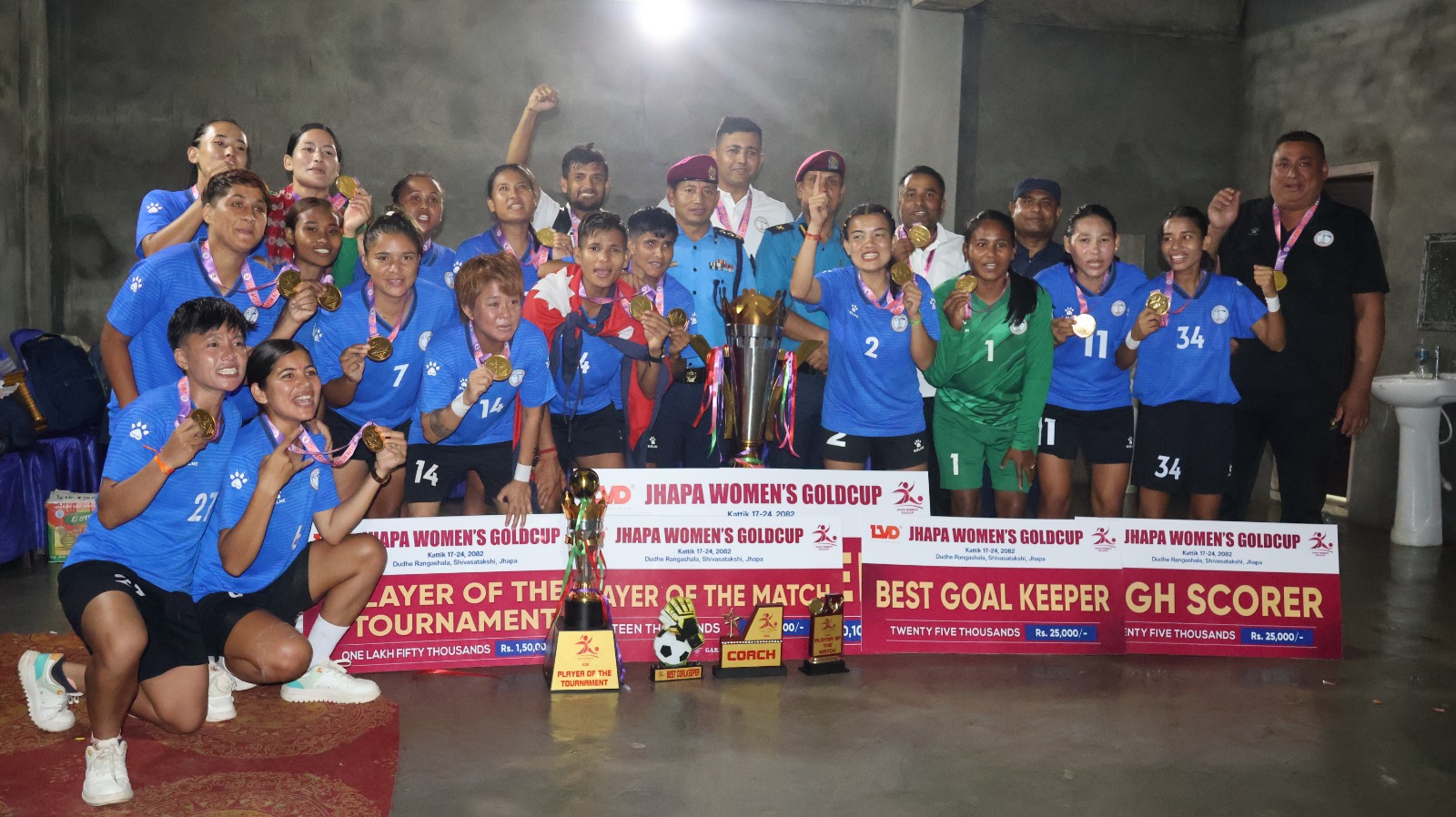 दिपक बोहोरा/हिमाल खरेल, झापा घरेलु फुटबलको सर्वाधिक सफल टोली एपिएफ फुटबल क्लबलाई हराउँदै अर्को विभागीय टोली नेपाल पुलिस क्लब एलभिडी झापा महिला गोल्डकप फुटबल प्रतियोगिताको च्याम्पियन बनेको छ। झापाको शिवसताक्षीस्थित दूधेखेल रंगशालामा आज भएको फाइनलमा एपिएफलाई १-० ले हराउँदै पुलिसले उपाधि जितेको हो। मिना देउवाको एक मात्र गोलमा पुलिस च्याम्पियन बनेको हो। एपिएफले गत वर्ष […]