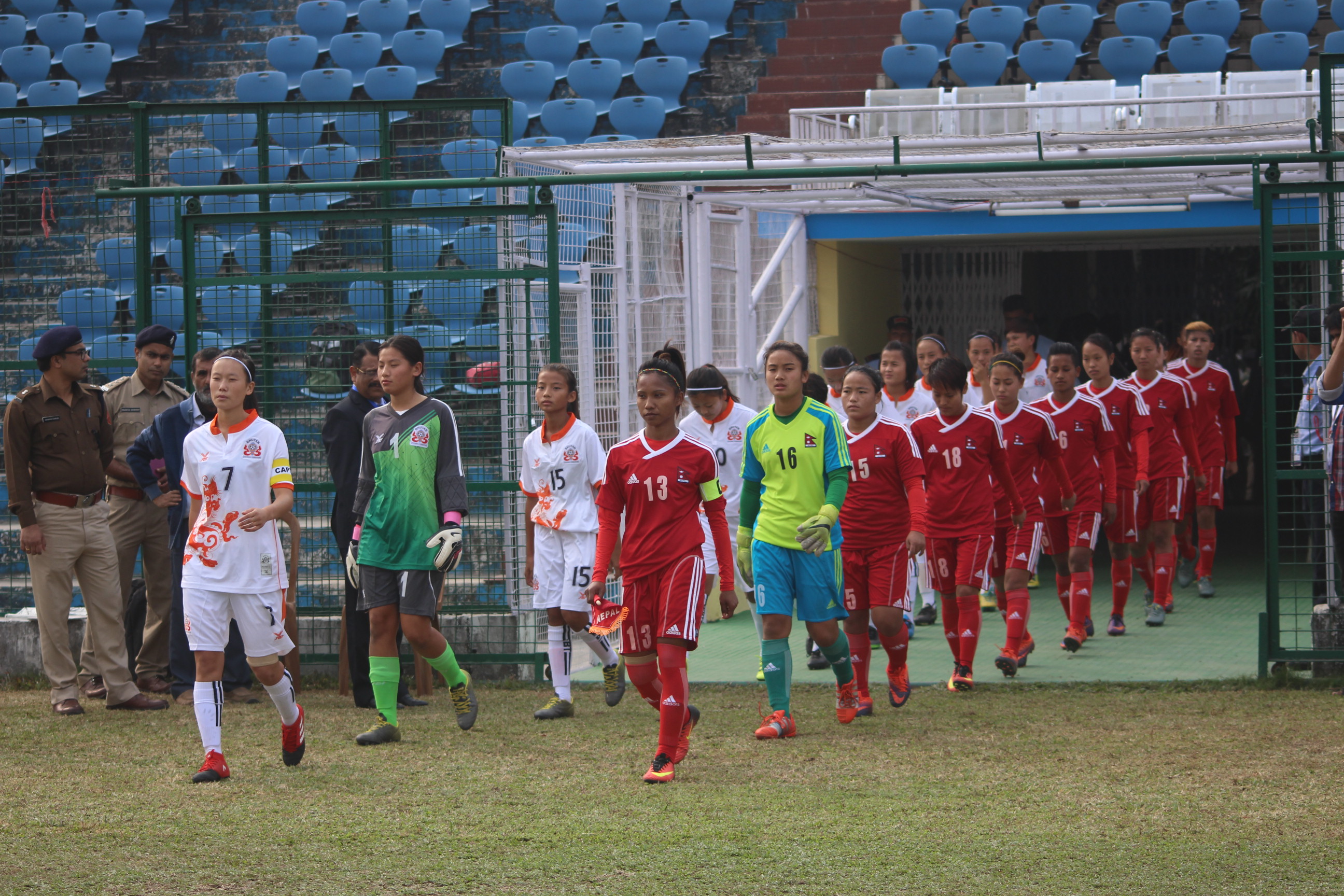 सिलिगुढी (हाम्रो खेलकुद)– महिला साफ च्याम्पियनसिपमा भुटानलाई ८–० ले हराउँदै नेपालले दमदार सुरुआत गरेको छ । साबित्रा भण्डारीको दोहोरो ह्याट्रिकबाट प्रेरित नेपालका लागि शर्मिला थापा र कृष्णा खत्रीले समान १ गोल गरे । नेपाल हावी भएको खेलका केही तस्बिरहरु । तस्बिर सौजन्य – रमेश समदर्शी, नेपाल खेलकुद पत्रकार मञ्च, झापा समन्वय शाखा