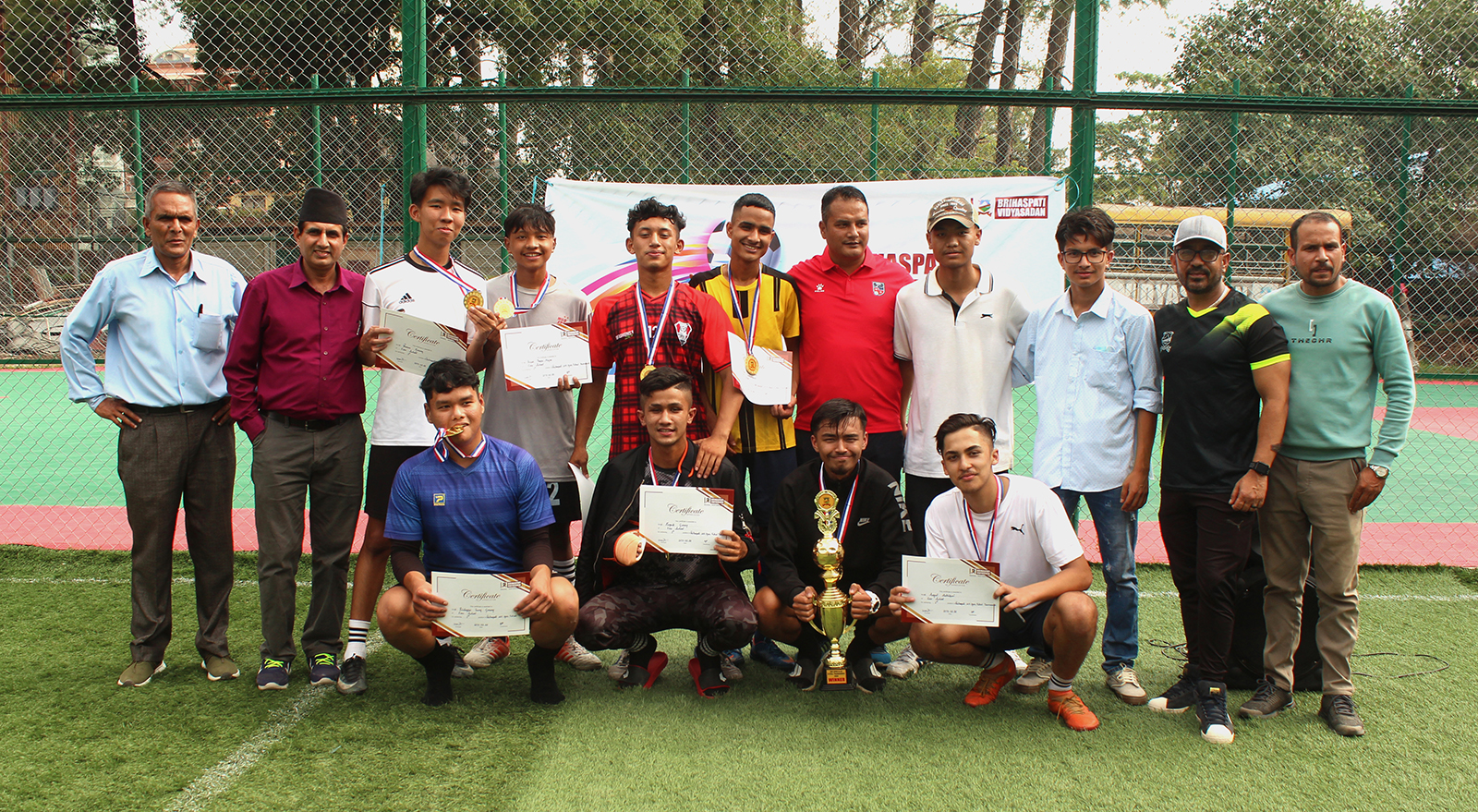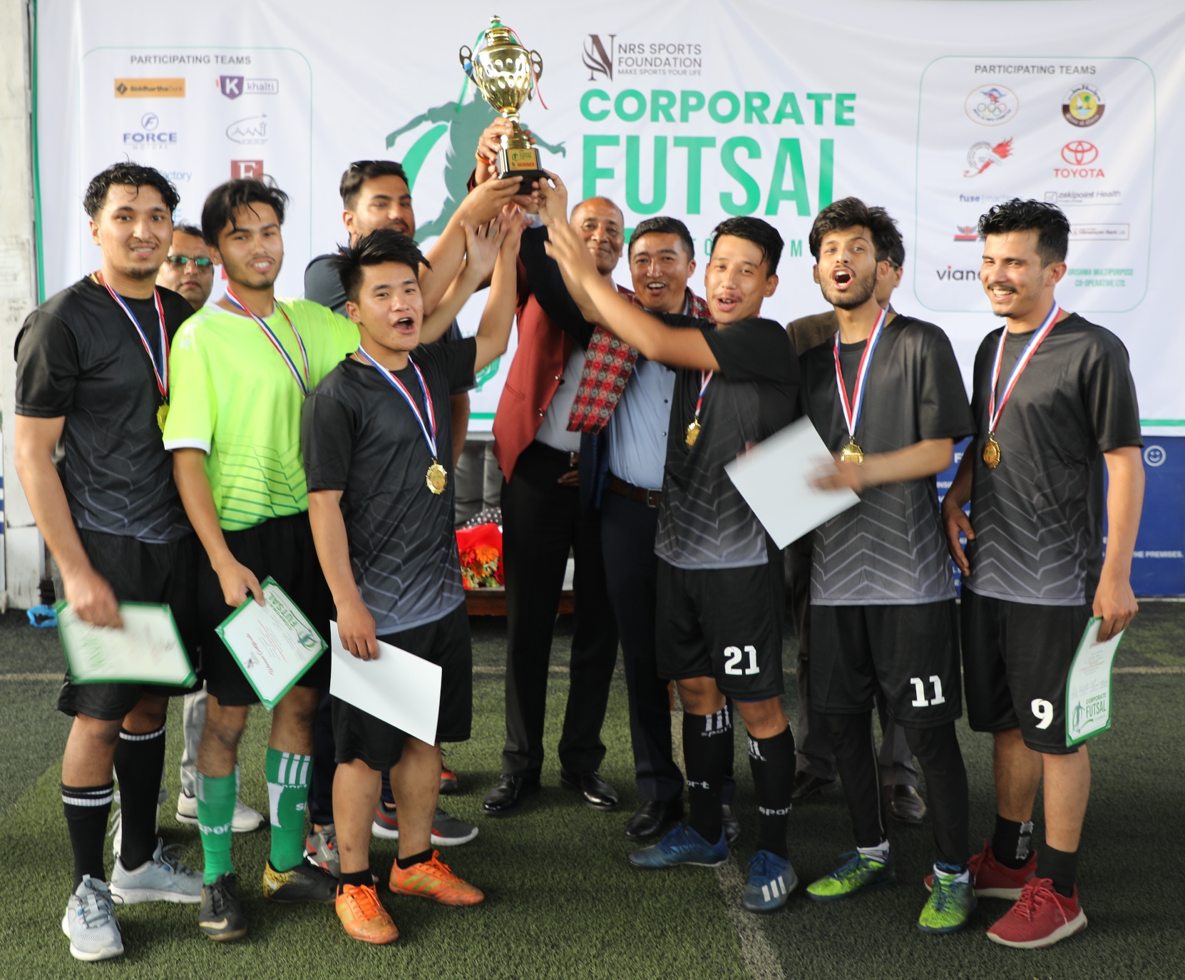 काठमाडौं (हाम्रो खेलकुद) – ग्रिष्मा मल्टिपर्पोज कोअपरेटिभ लिमिटेडले दोश्रो संस्करणको एनआरएस फुटसल प्रतियोगिताको उपाधि हात पारेको छ । ढुकु फुटसल हब बालुवाटारमा शनिबार भएको एक दिने प्रतियोगिताको फाइनलमा ज्याकीप्वाईन्ट हेल्थ प्रालिलाई ४–० ले पराजित गर्दै च्याम्पियन बन्न सफल भएको हो । एनआरएस स्पोर्टस् फाउण्डेसनको आयोजनामा भएको प्रतियोगिताको बिजेता ग्रिष्माले १ लाख रुपैयासहित ट्रफी, मेडल र […]