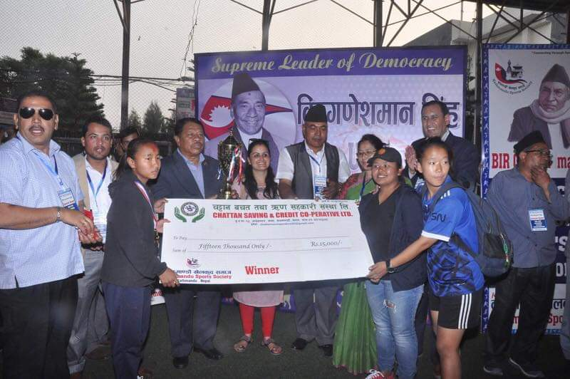 काठमाडौं (हाम्रो खेलकुद) – ब्राइटफ्युचर र कुमारी फुटसलले गणेशमान सिंह एससीसी कप फुटलसको उपाधि जितेका छन् । मण्डिखाटार स्थित ग्रासरुट फुटसल सेन्टरमा भएको प्रतियोगितामा छात्रा तर्फ कुमारी फुटसलले नेपालय स्कुललाई ४–१ ले हराएको थियो । त्यस्तै छात्र तर्फ ब्राइटफ्युचर स्कुलले ढुकु फुटसललाई सडन डेथ हराउँदै उपाधि जितेको हो । सो अवसरमा नेपाली राष्ट्रिय टोलीका गोलकिपर […]