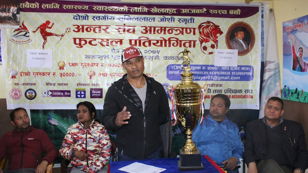 काठमाडौं (हाम्रो खेलकुद) – नेपाल खेलाडी तथा प्रशिक्षक संघको आयोजनामा दोश्रो सुनीललाल जोशी स्मृति अन्तर संघ फुटसल प्रतियोगिता शुक्रबारदेखि हुने भएको छ । प्रतियोगितामा २१ टिमको सहभागिता निश्चित भएको खेलाडी तथा प्रशिक्षक संघका अध्यक्ष महेश महर्जनले बिहीबार आयोजित पत्रकार सम्मेलनमा जानकारी गराए । नकआउट पद्धतिमा हुने प्रतियोगिताको खेल २० मिनेटको हुनेछ । फाइभ ए साइड […]
