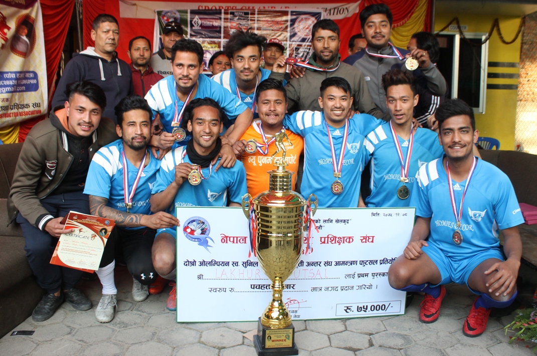 काठमाडौं (हाम्रो खेलकुद) – नख्खु फुटसलले दोश्रो सुनीललाल जोशी स्मृति अन्तर संघ फुटसल प्रतियोगिताको उपाधि शुक्रबार जितेको छ । नेपाल खेलाडी तथा प्रशिक्षक संघद्वारा आयोजित प्रतियोगिताको फाइनलमा नख्खुले दिलिप स्मृति प्रतिष्ठानलाई ५–३ गोलले पराजित ग¥यो । नख्खुका रफी महर्जन र भुवन राउतले २–२ तथा अभय राणाले १ गोल गरे । प्रतिष्ठानबाट अनिल खड्का, दिपेन्द्र खत्री […]